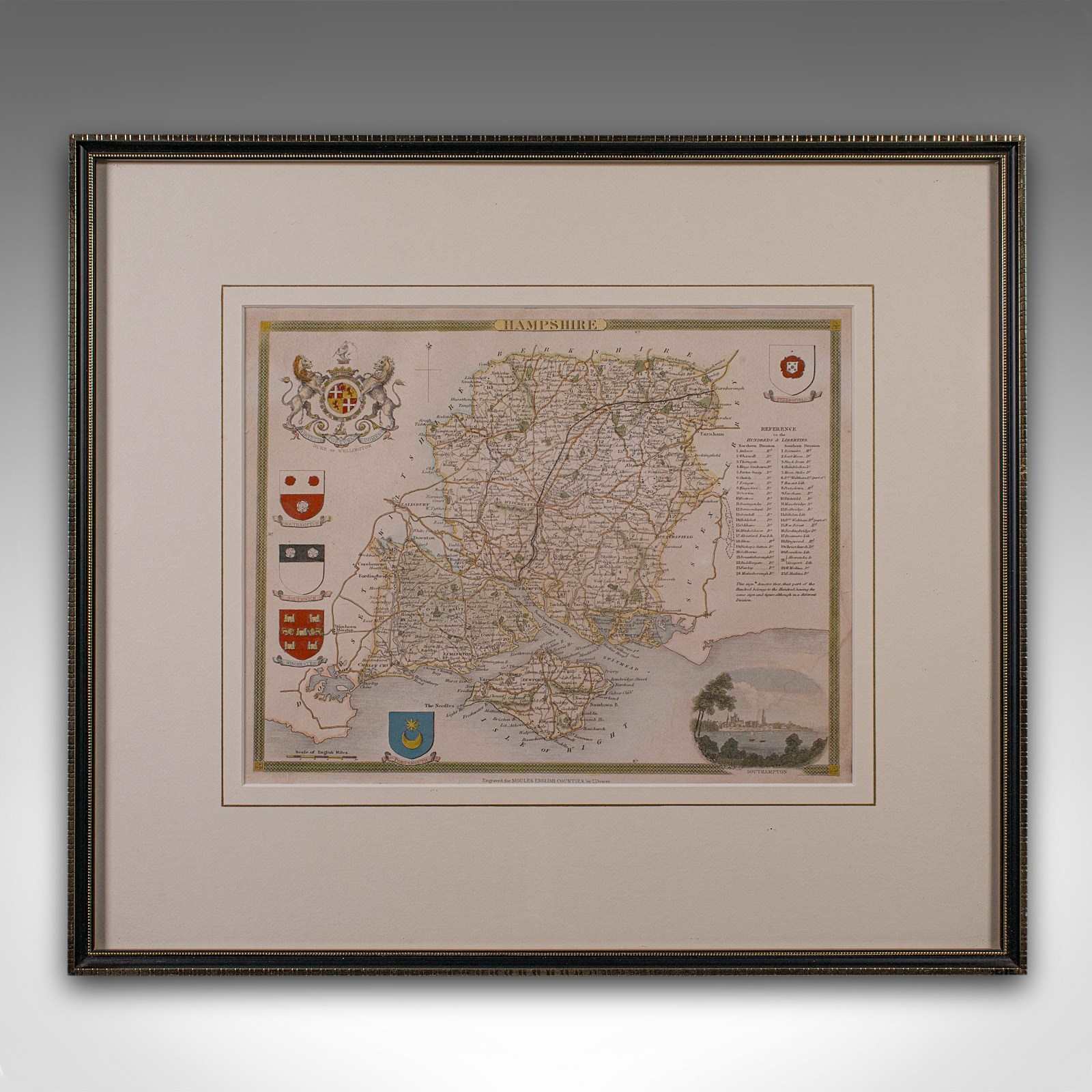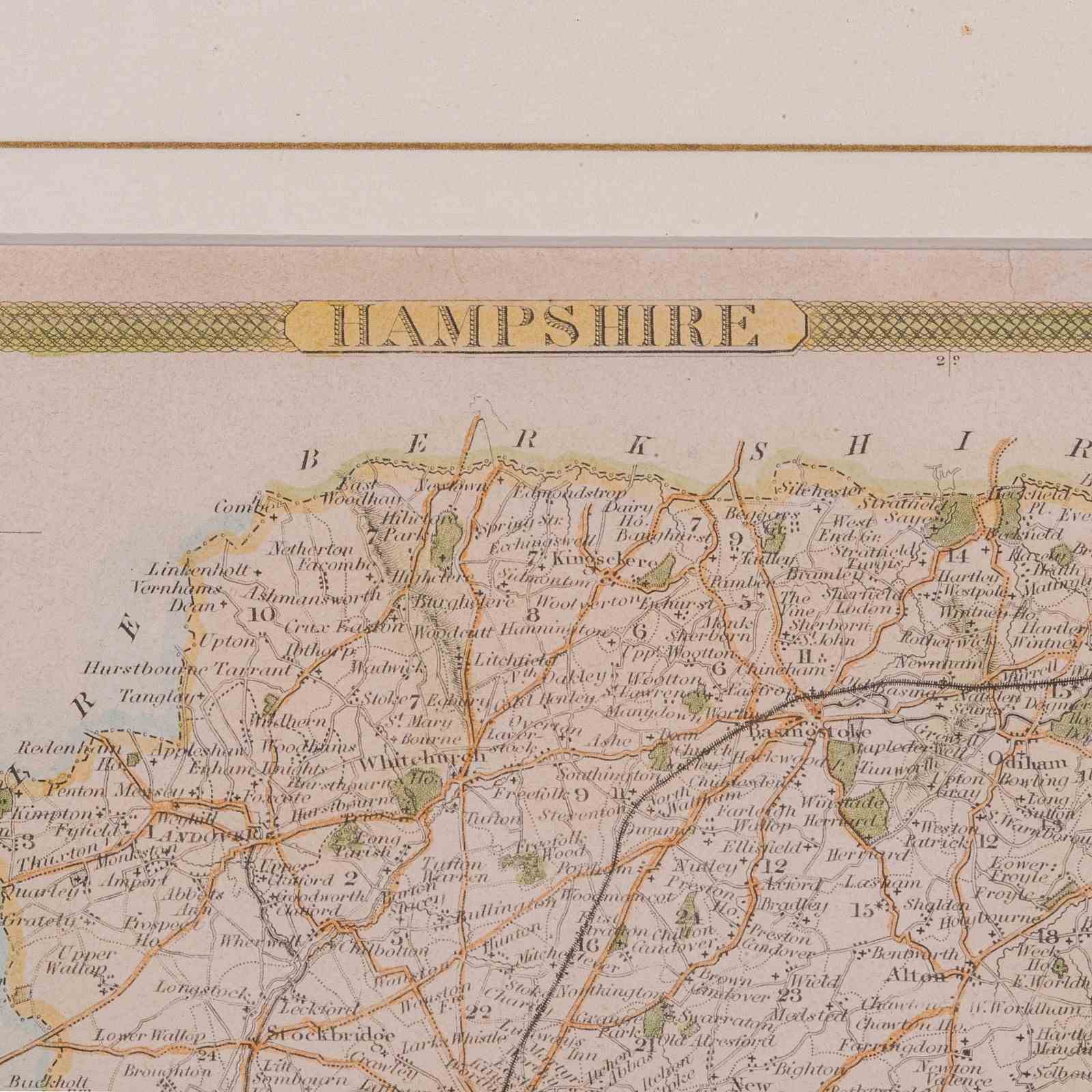 This is an antique lithography map of Hampshire. An English, framed atlas engraving of cartographic interest, dating to the mid 19th century and later.