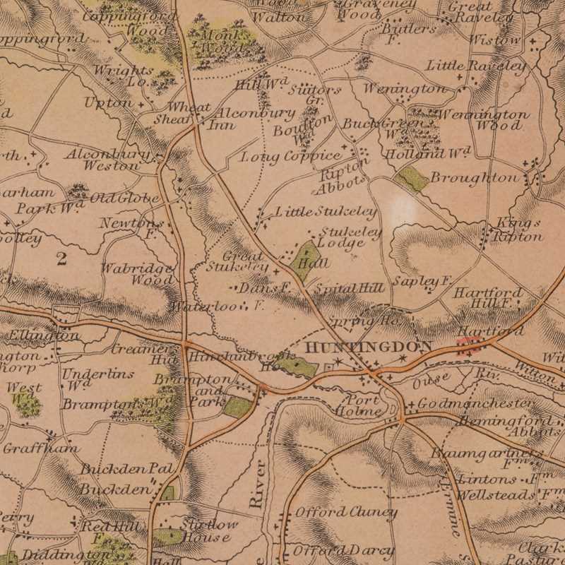 This is a quality antique lithography map of Huntingdonshire, with fine cartographic interest. Delivered ready to display.