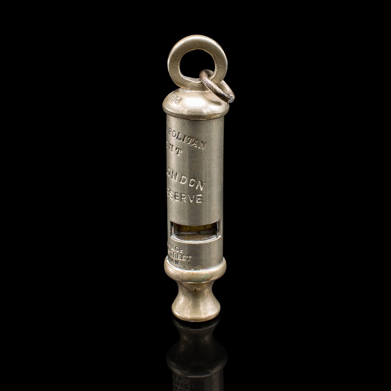 This is a superb antique London police whistle, with a charming nature and ideal as a gift for a retired constable or for decorative display. Delivered ready to enjoy.