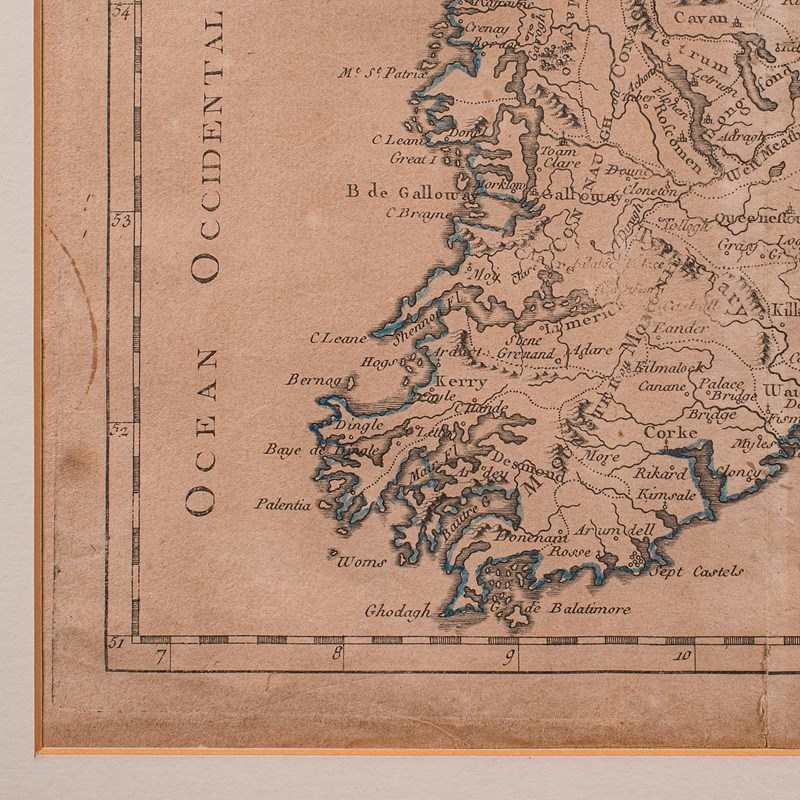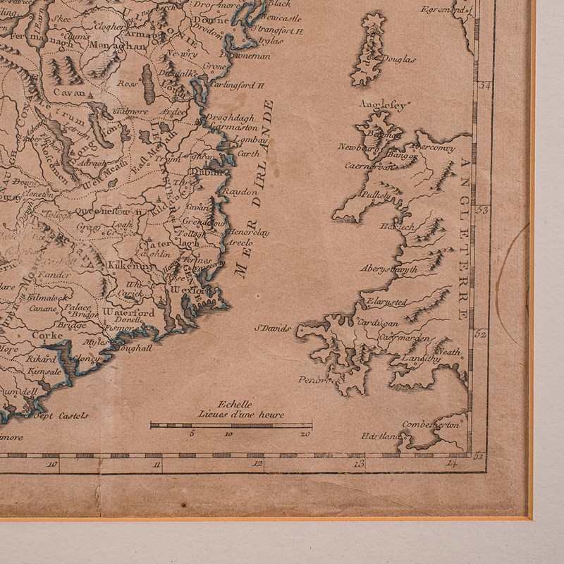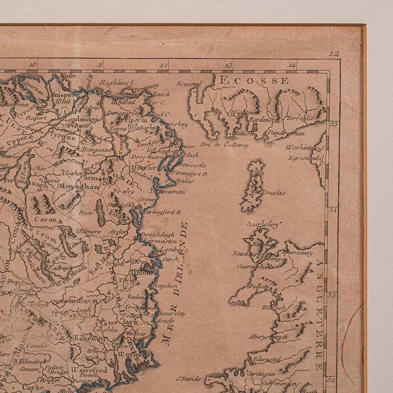 Antique Map Of Ireland, French, Framed Cartography, Eire, Georgian, Circa 1780