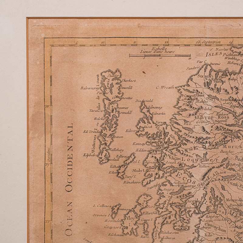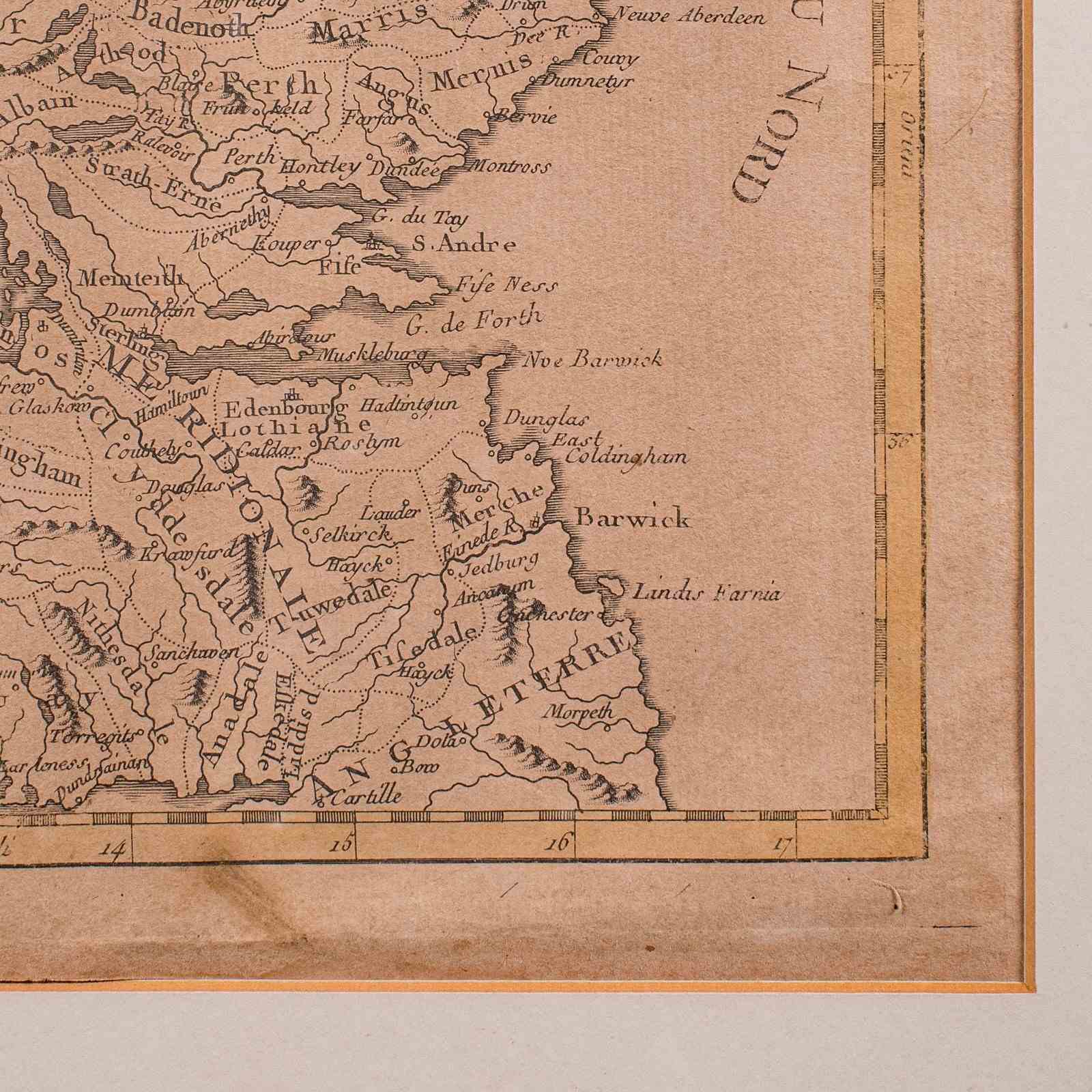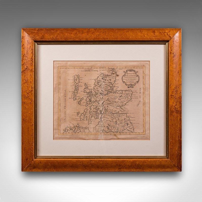 Antique Map Of Scotland, French, Framed Cartography, Ecosse, Georgian, C.1780