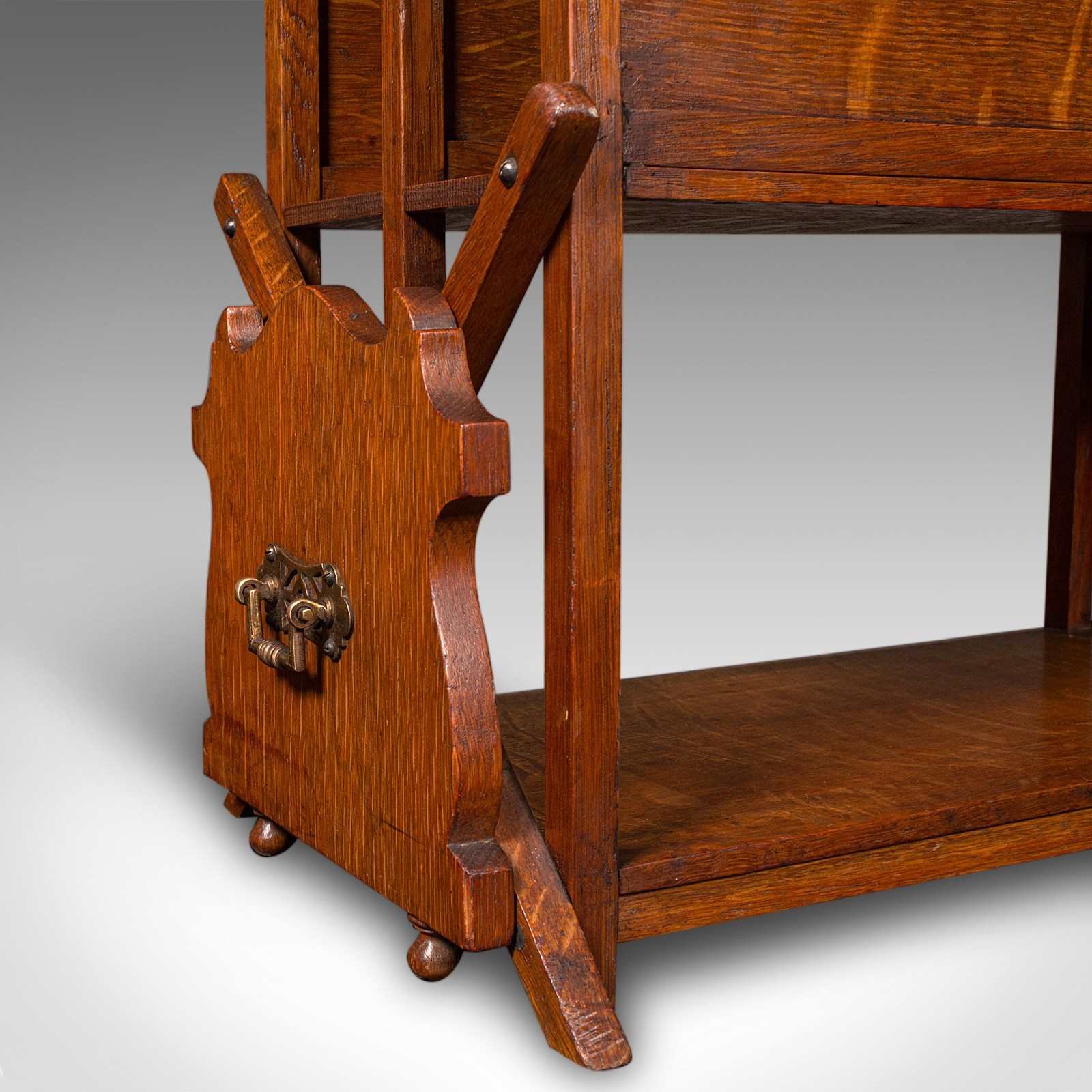 A highly engaging and functional piece, this antique Canterbury stand combines aesthetic charm with ingenious versatility. A rare example of Edwardian craftsmanship, perfect for lovers of Arts & Crafts interiors or unique bibliophile furniture. Solid joints and construction, delivered ready for the home.