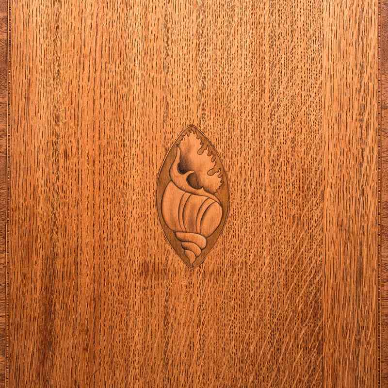 Field panel door adorned with a boxwood inlaid shell cartouche