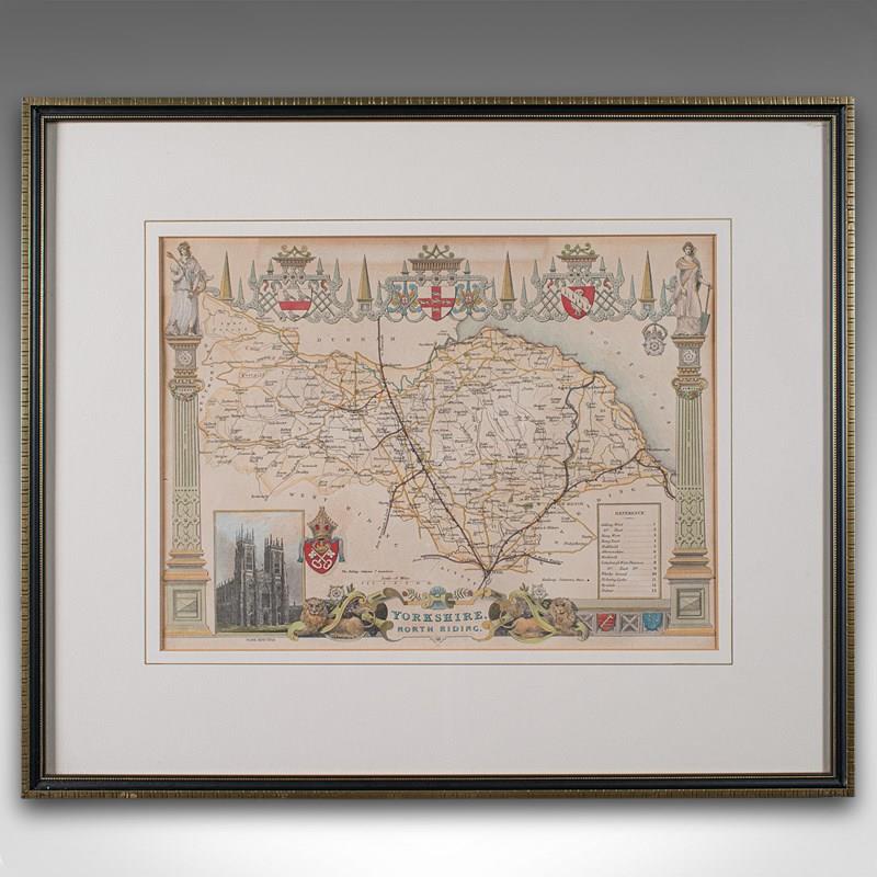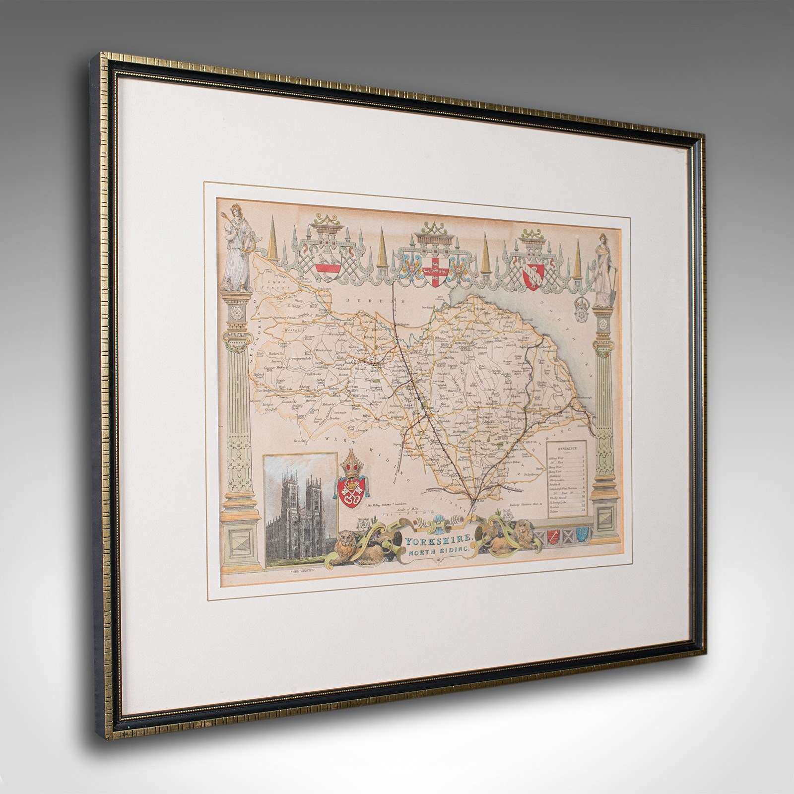Antique North Yorkshire Map, English, Framed Lithography, Cartography, Victorian