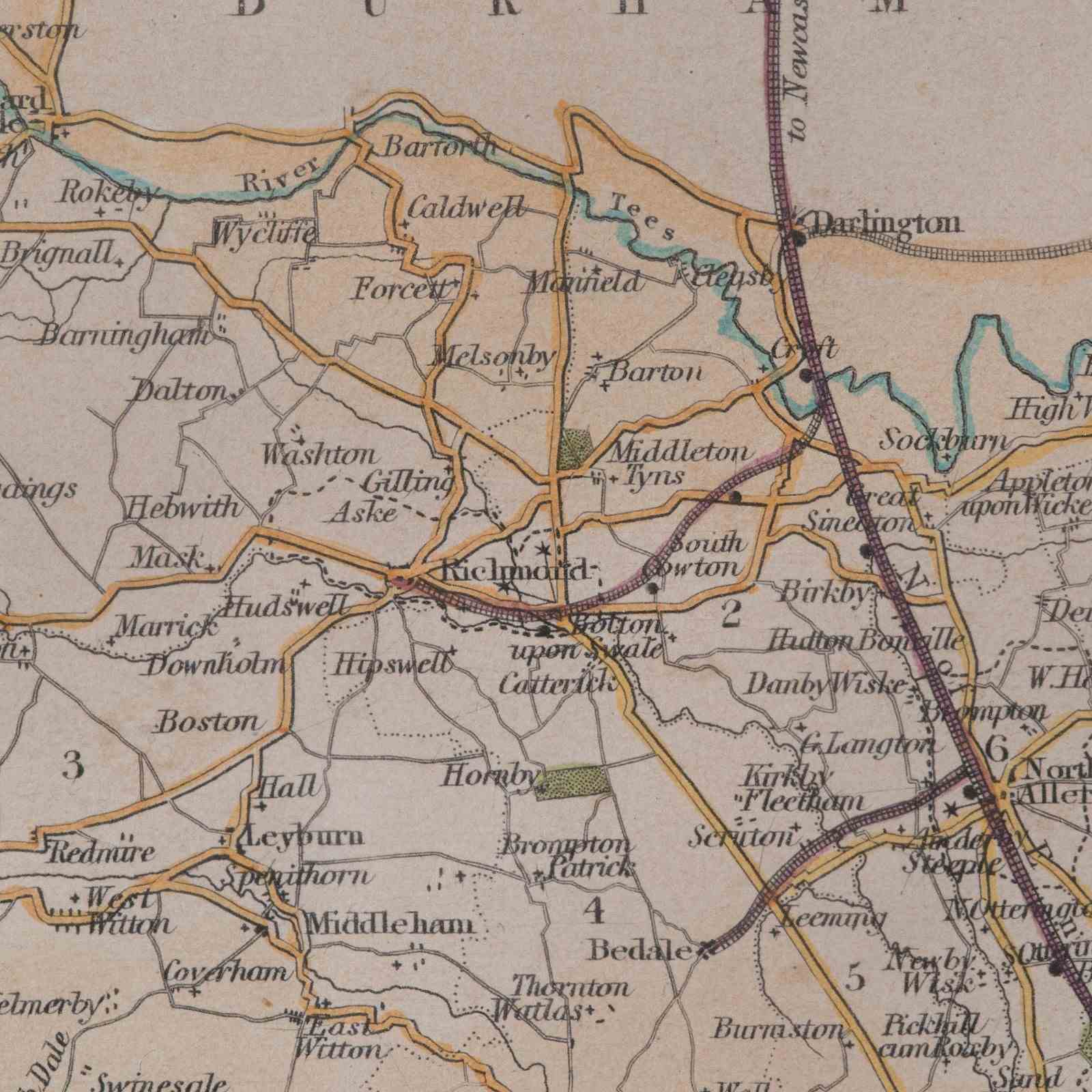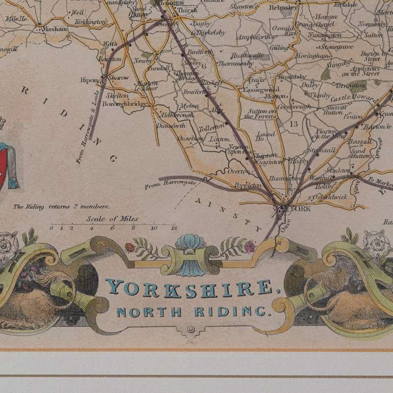 This is a quality antique lithography map of North Yorkshire, with fine cartographic interest. Delivered ready to display.