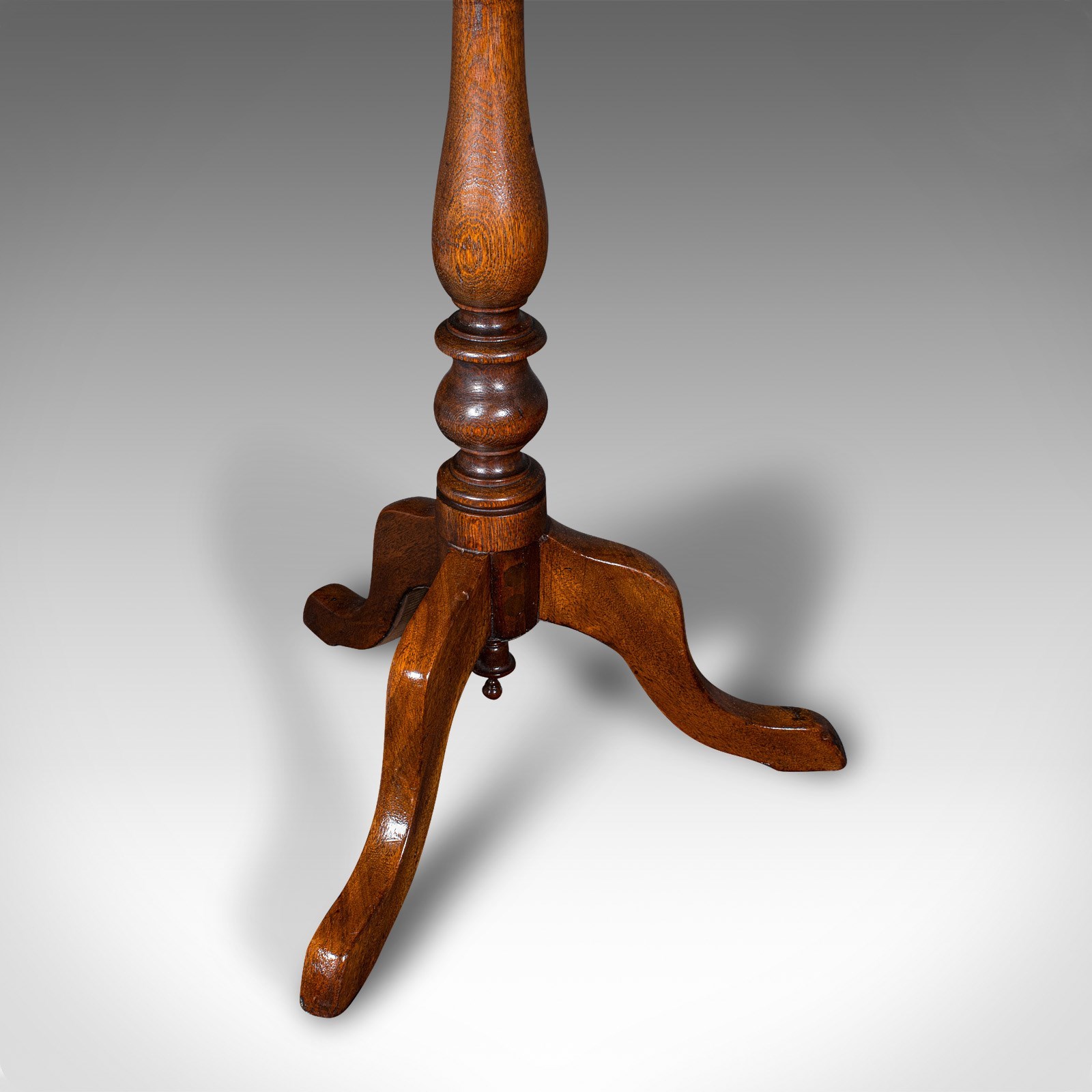 - Raised upon an attractive turned baluster support with bulb and collar finish