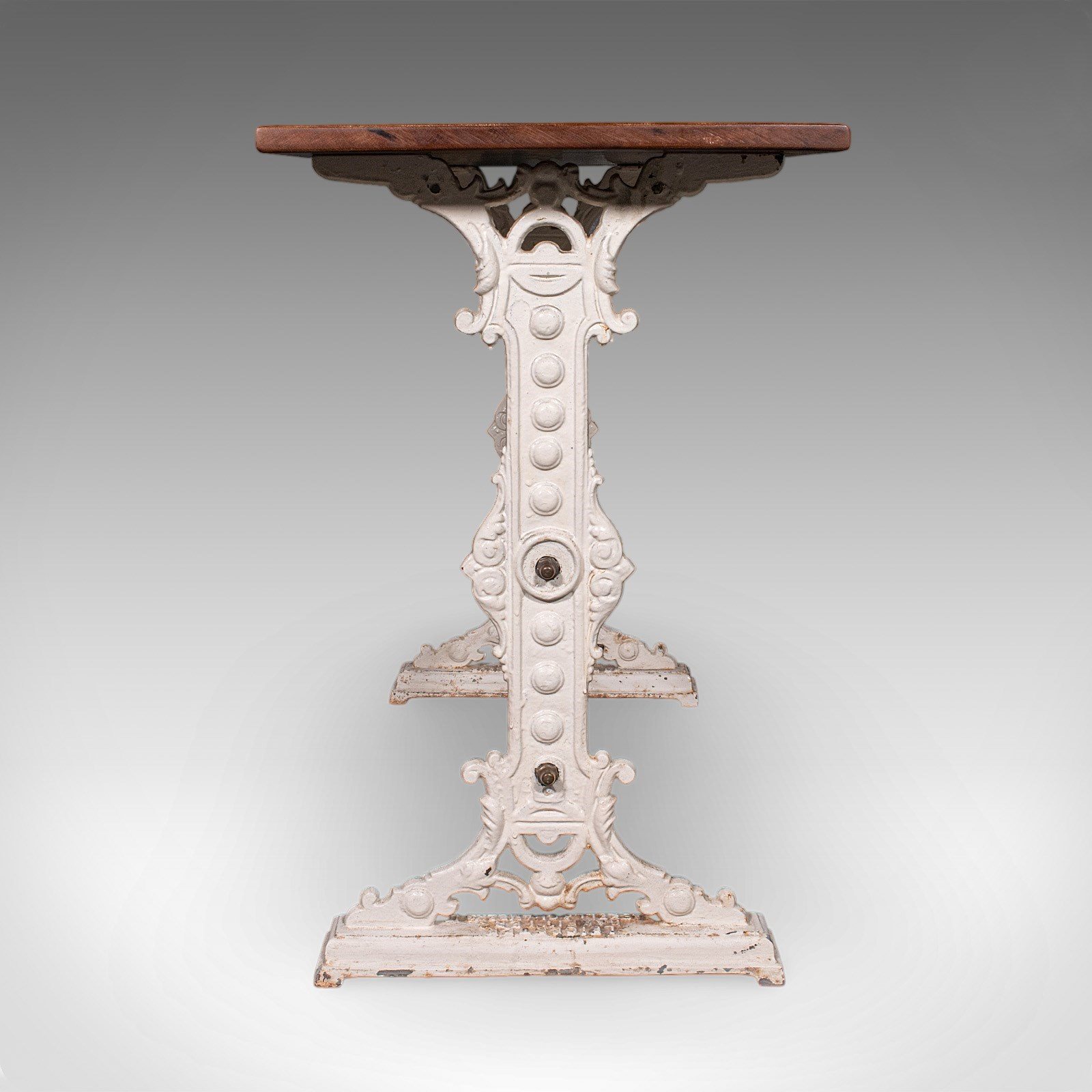 Painted cast iron base presents and appealing, old English white finish