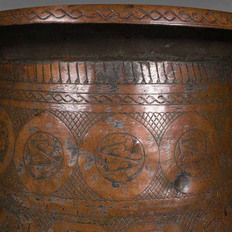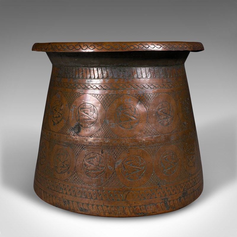 Antique Ottoman Empire Waste Paper Bin, Middle Eastern, Copper Basket, Victorian