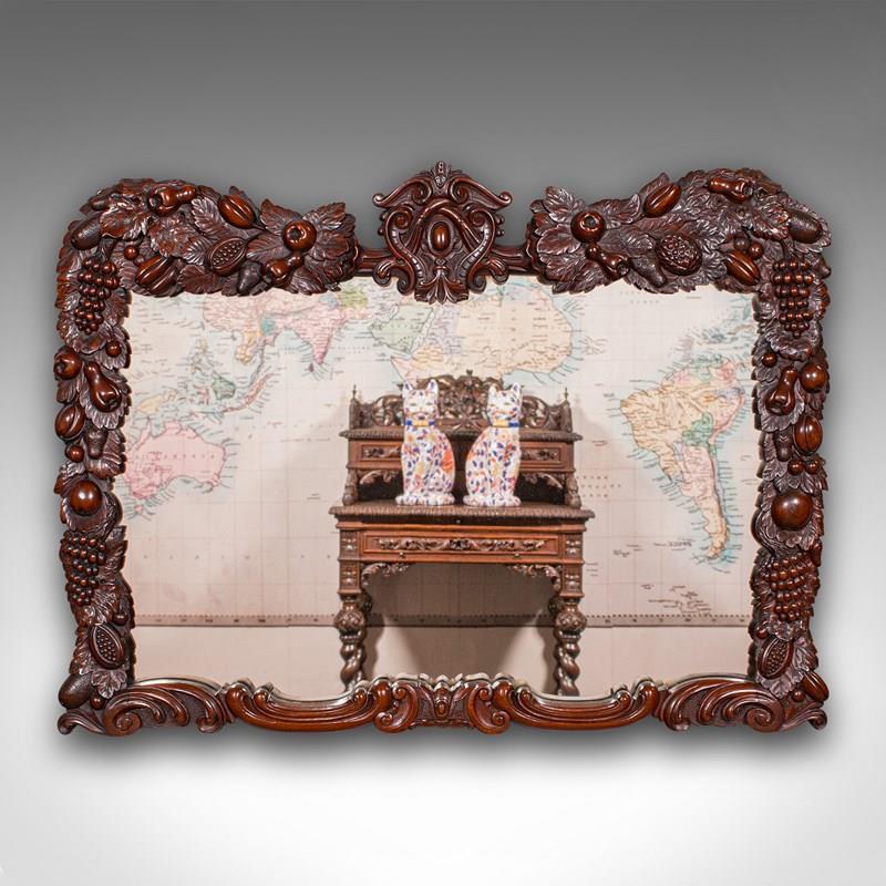 Antique Overmantle Mirror, English, Country House, Carved, Victorian, Circa 1900