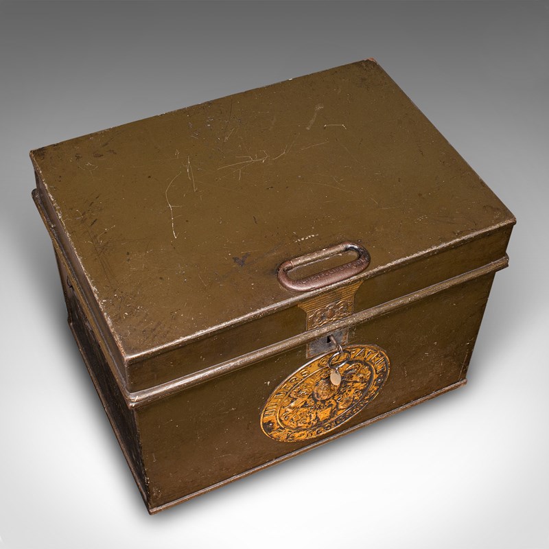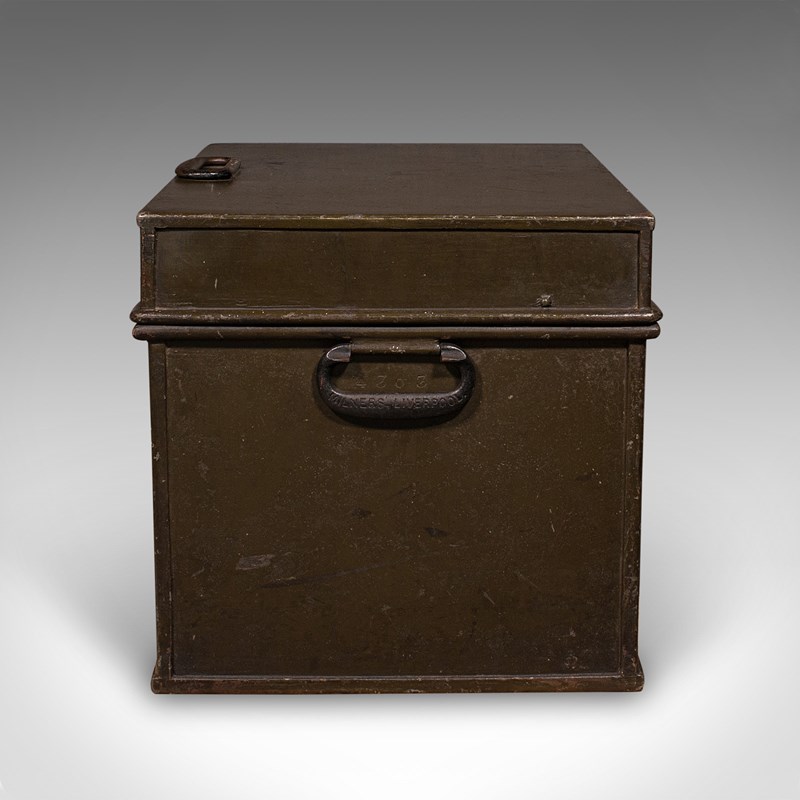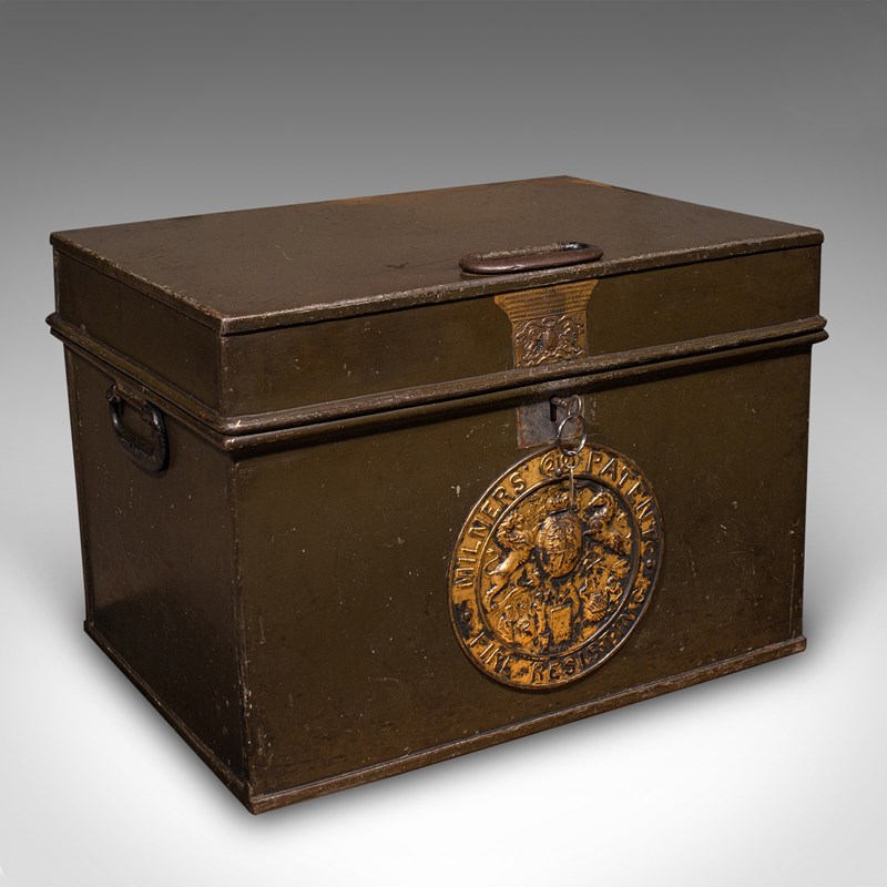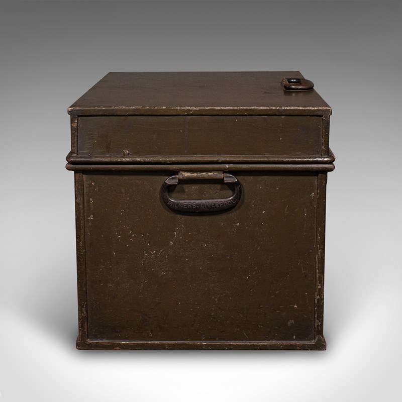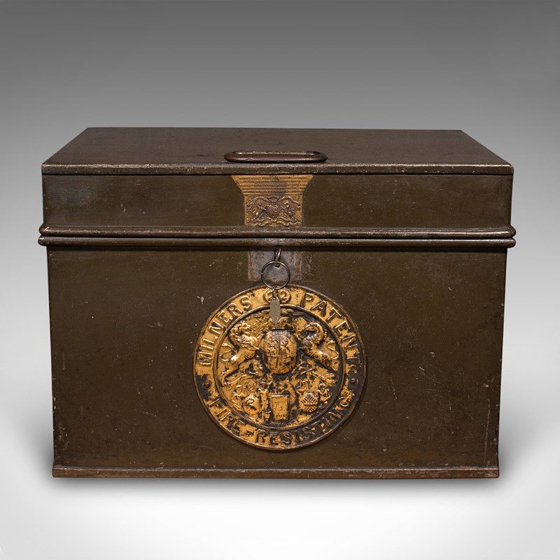 Antique Patent Safe, English Cast Iron Lock Box, Milners Of Liverpool, Victorian