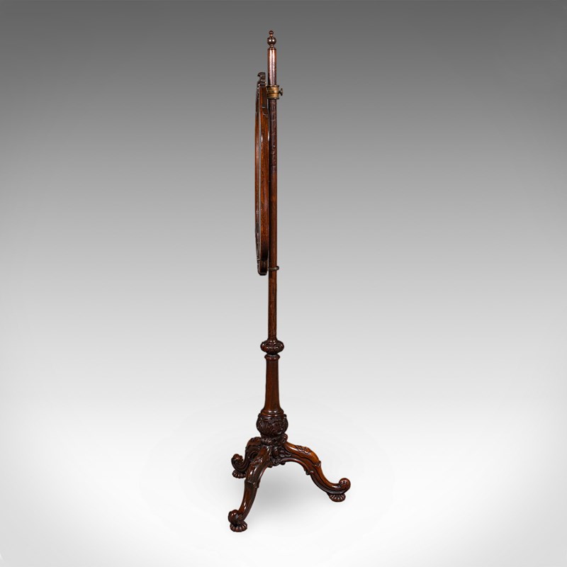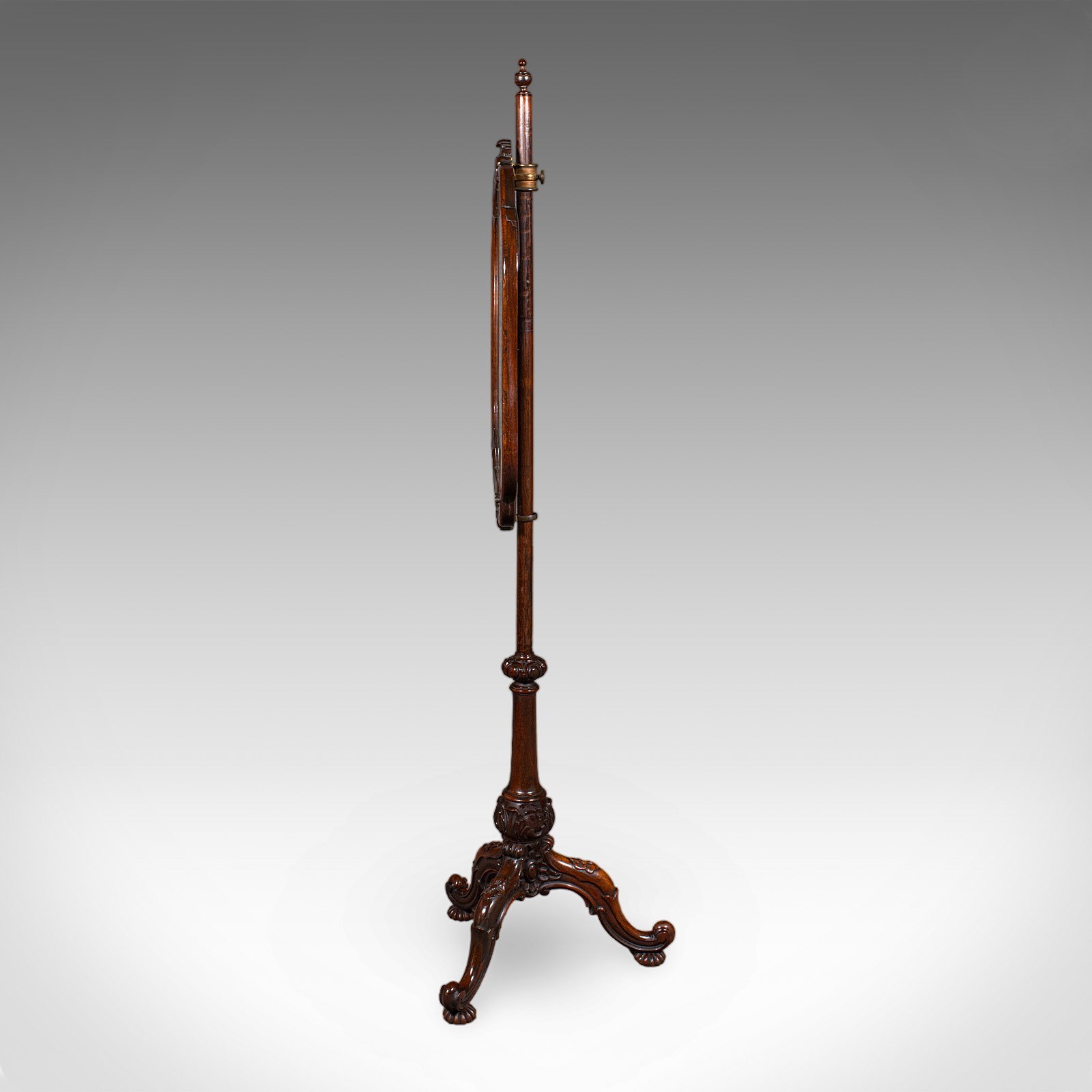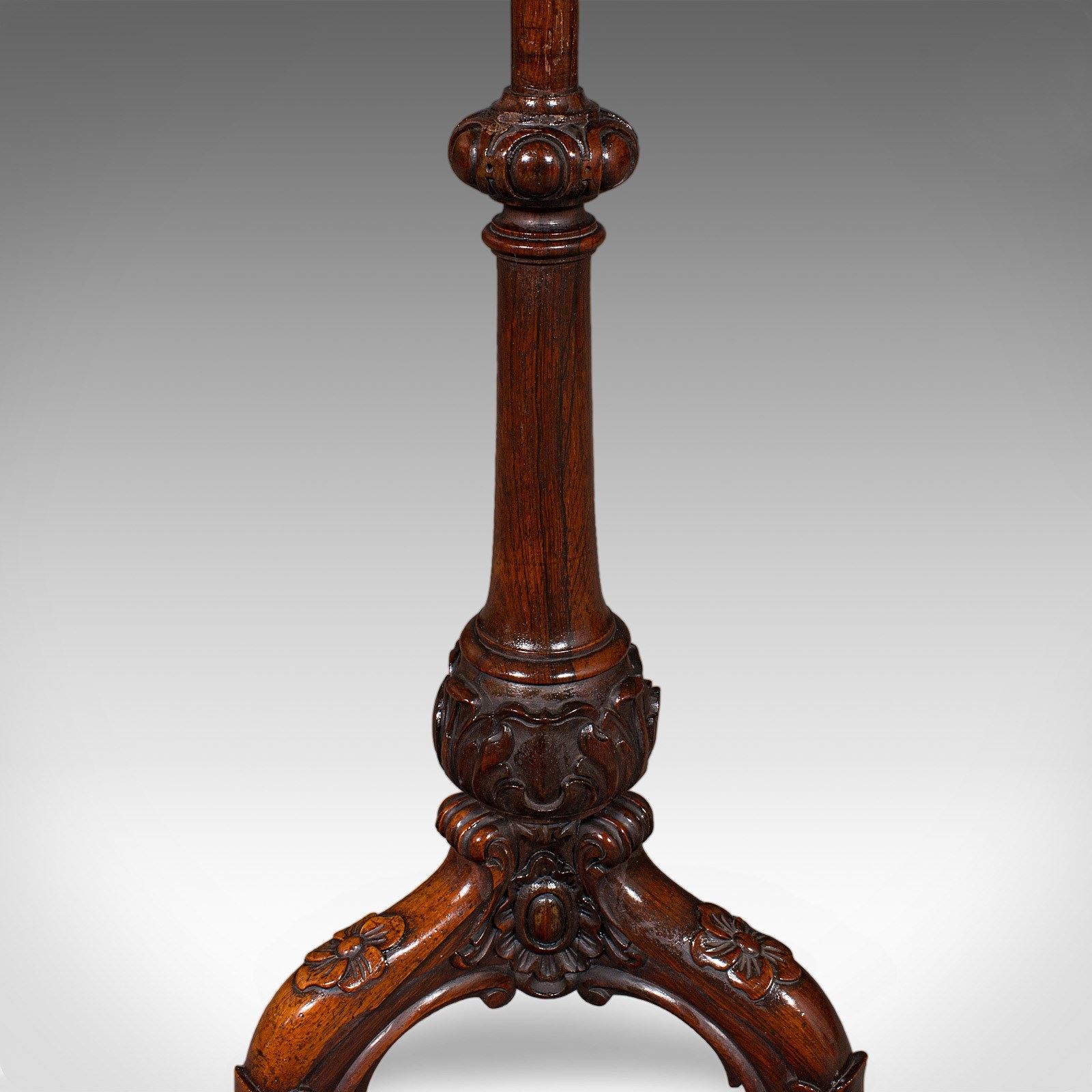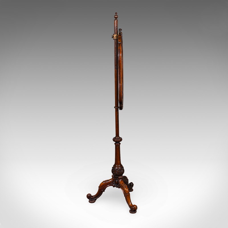 This is an antique pole screen. An English, rosewood and glass embroidered fireside heat reflector, dating to the early Victorian period, circa 1840. A beautiful example showcasing fine craftsmanship, rich materiality and exceptional decorative interest.