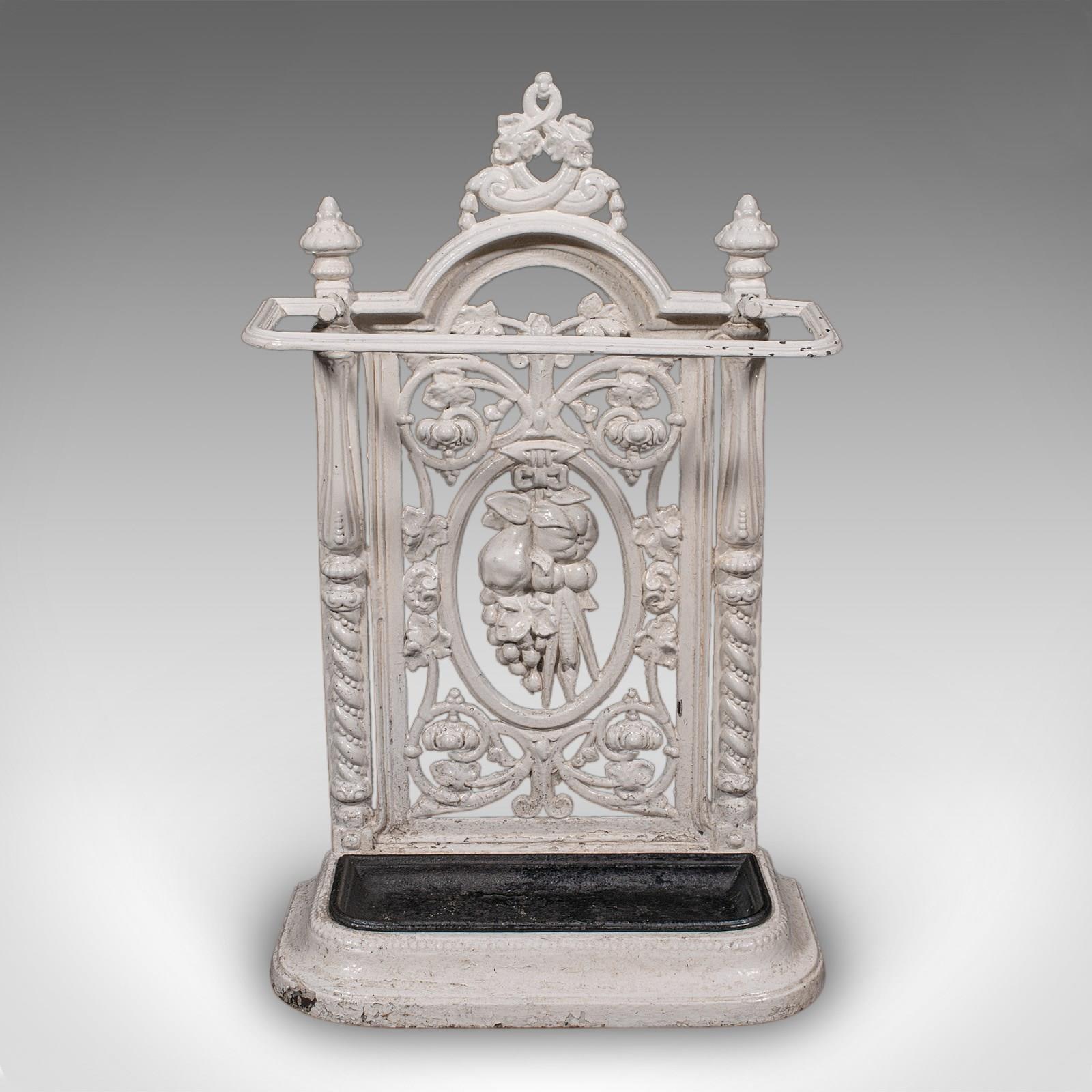This is a fine antique portico stick stand, with a crisp appearance and fascinating detail. Delivered ready for the home or institution.