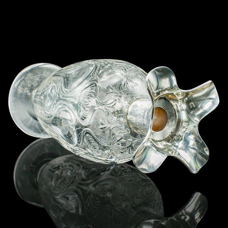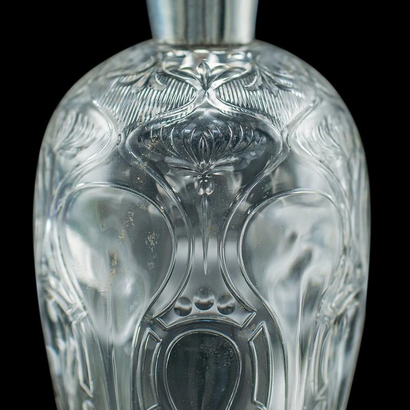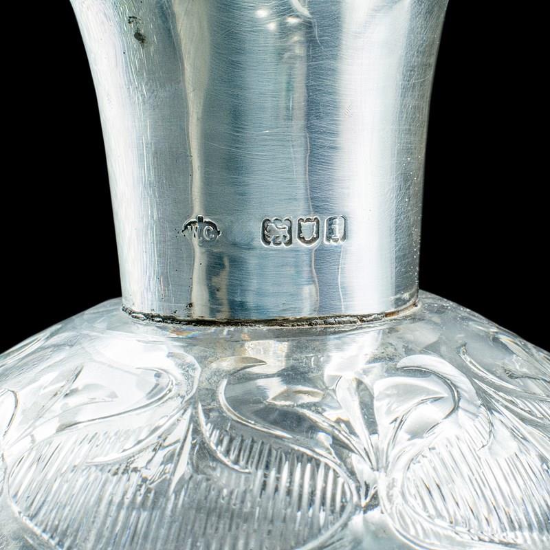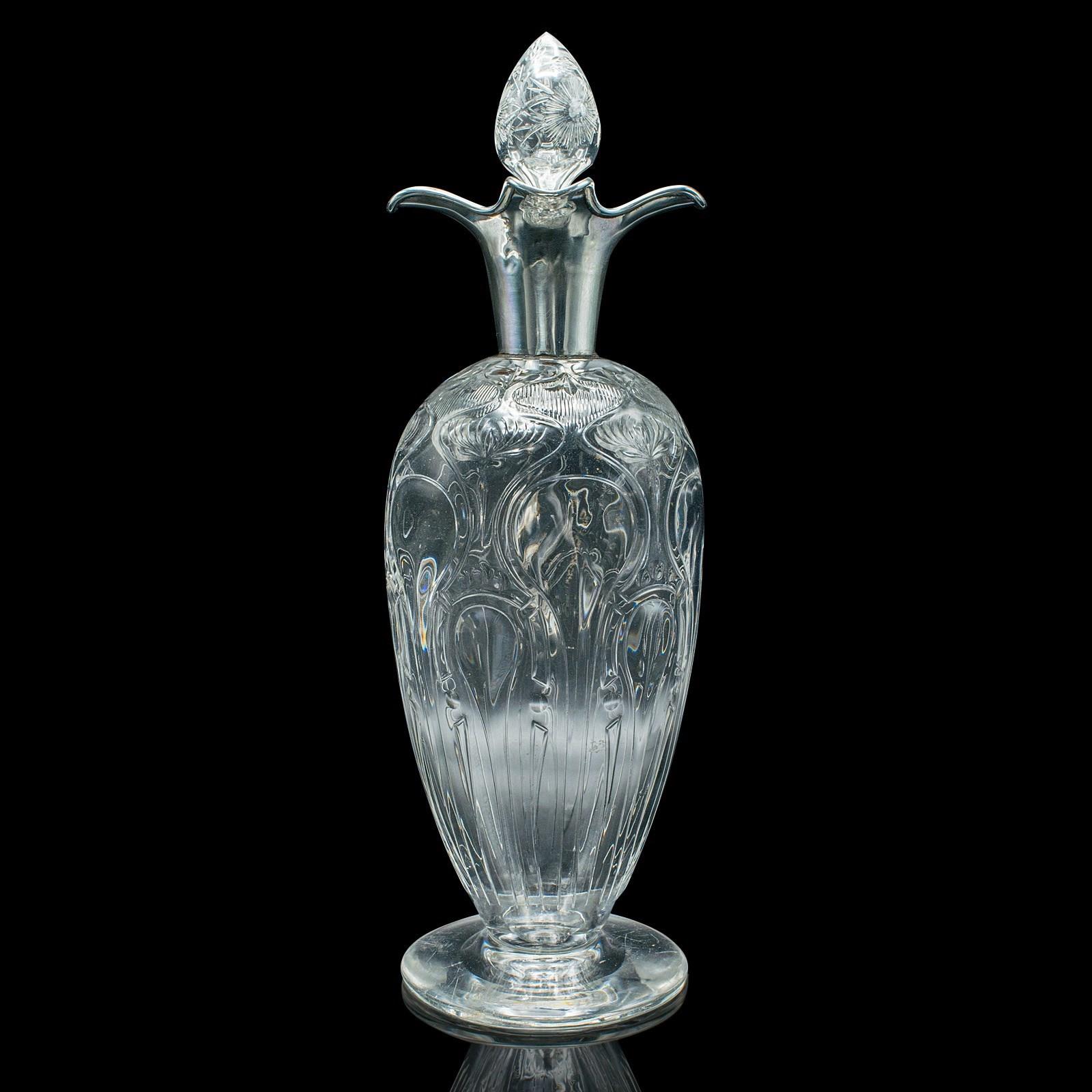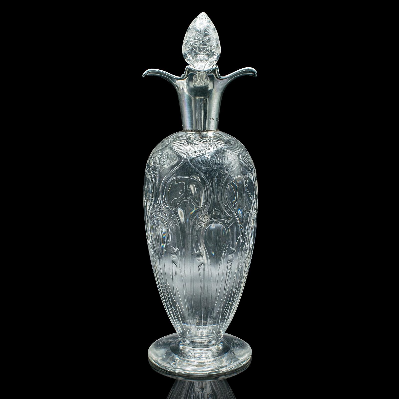 Antique Pouring Decanter, English Glass, Hallmark Silver, Art Nouveau, Edwardian