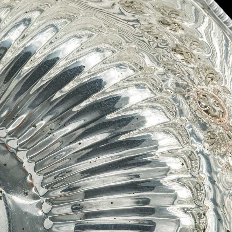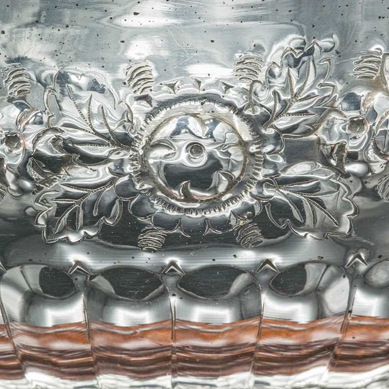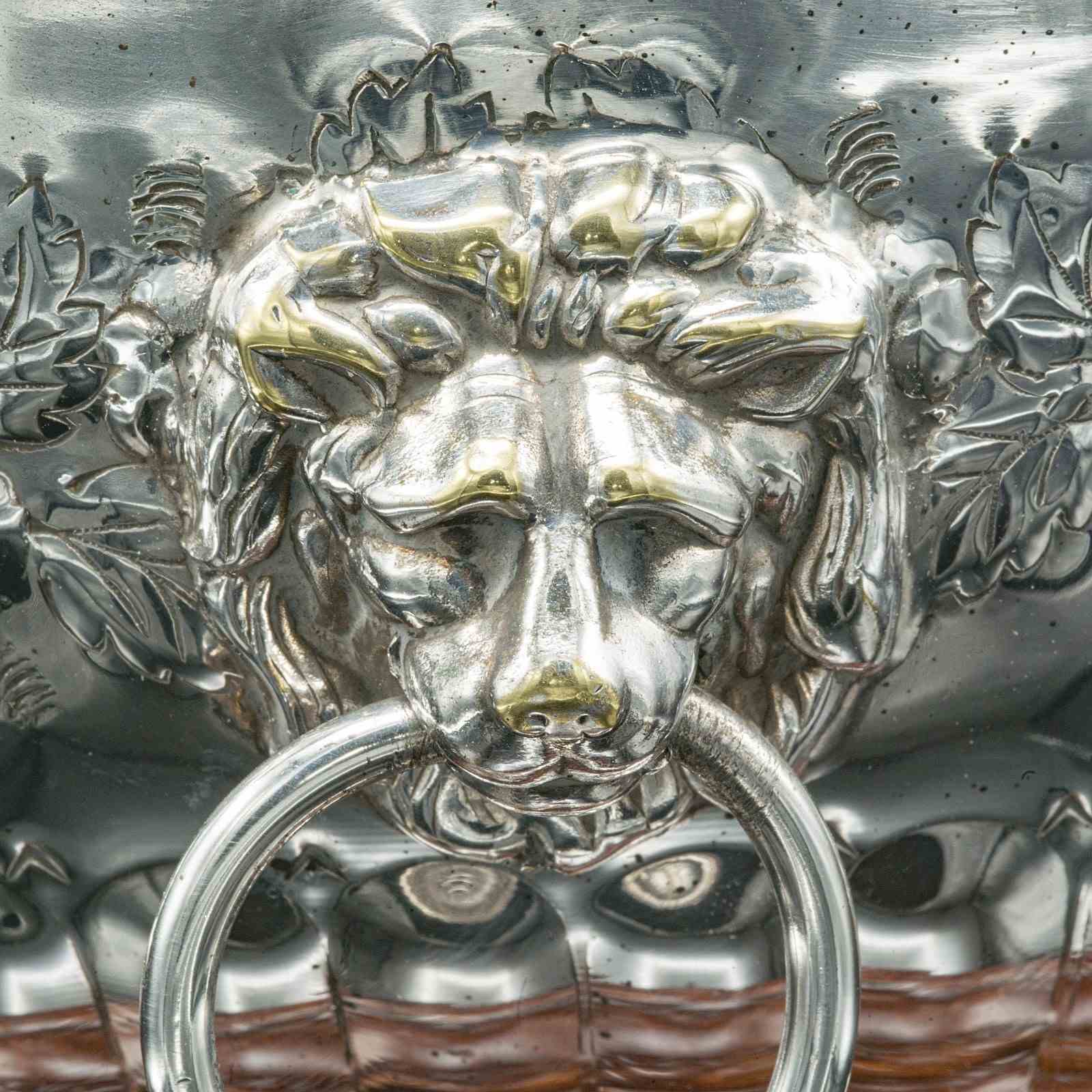 This is an antique presentation bowl. An English, silver plate and mahogany ice bucket or punch dish, dating to the Edwardian period, circa 1910. A grand ceremonial piece of impressive scale and decorative presence.