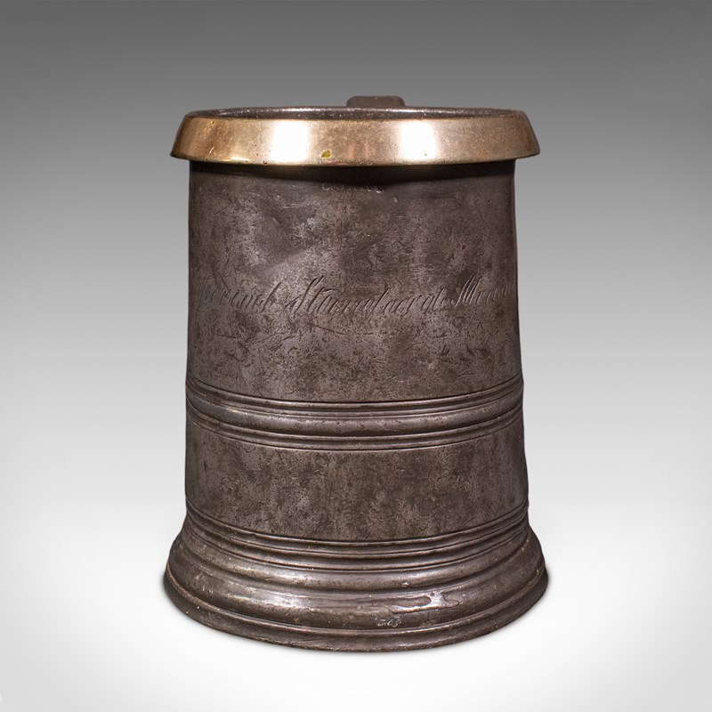 Antique Public House Tankard, English, Pewter, Quart Jug, Breweriana, Victorian