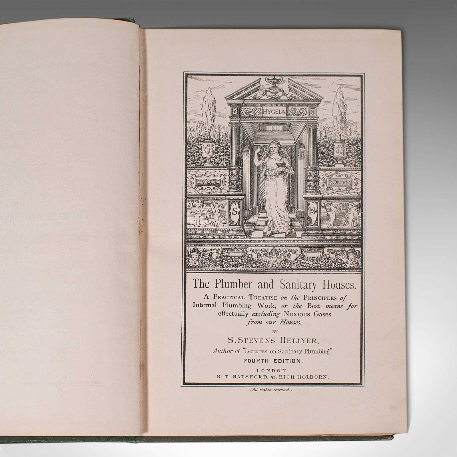 This is an antique copy of The Plumber and Sanitary Houses by S. Stevens Hellyer, published in the Victorian period, this edition in 1877.
