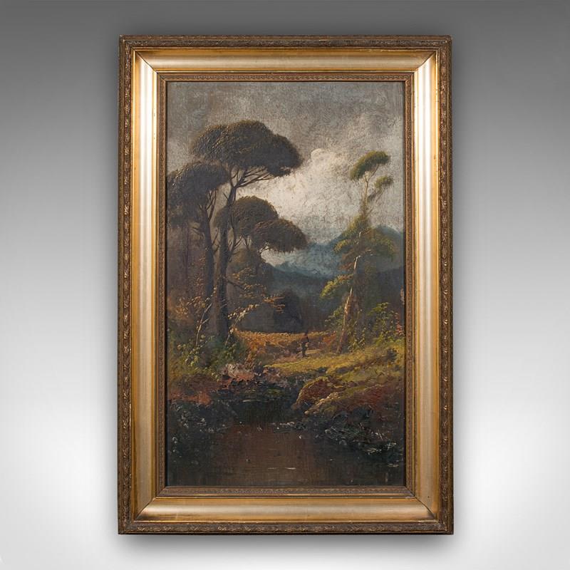 Antique Riverside Painting, Scottish Art, Oil On Canvas, Landscape, Victorian