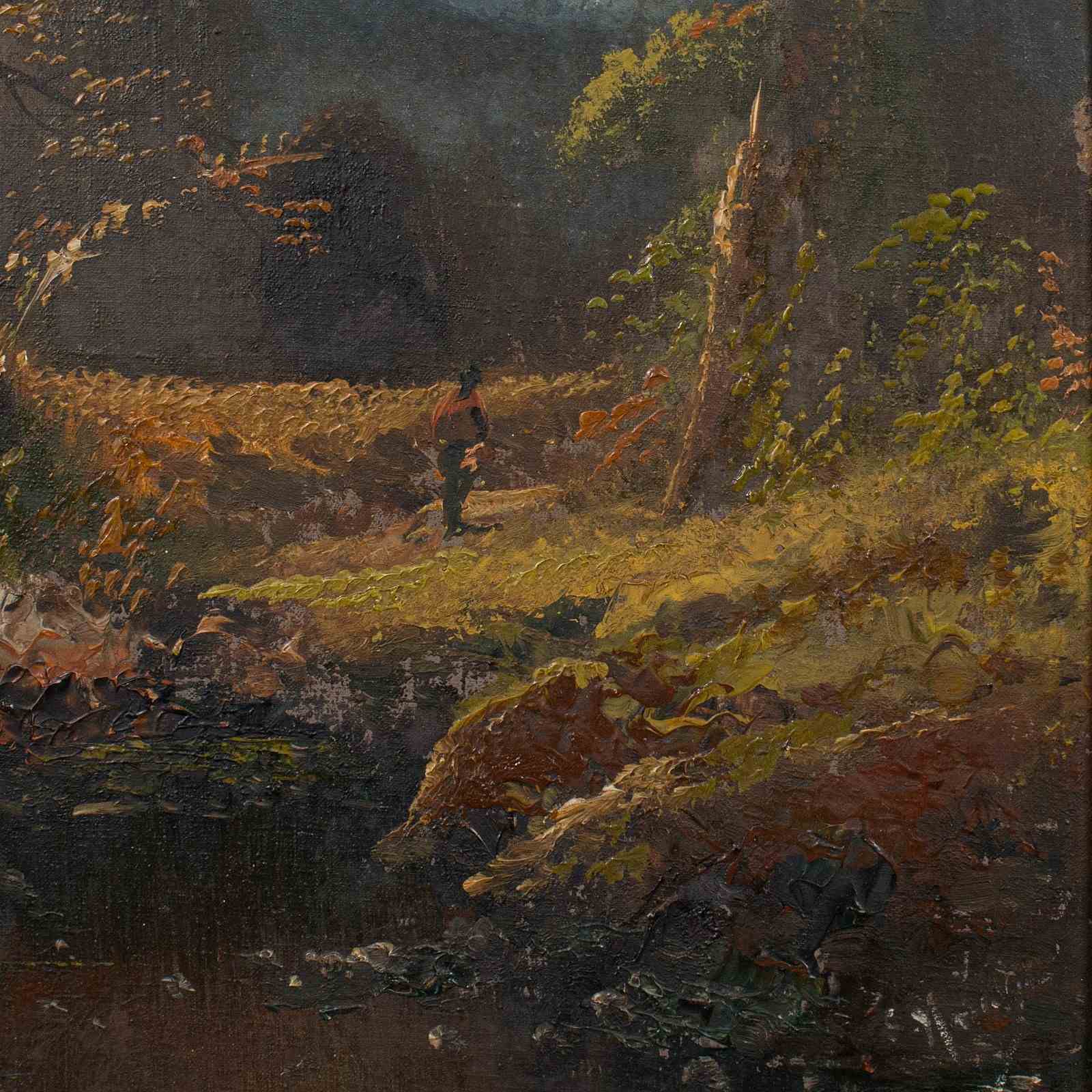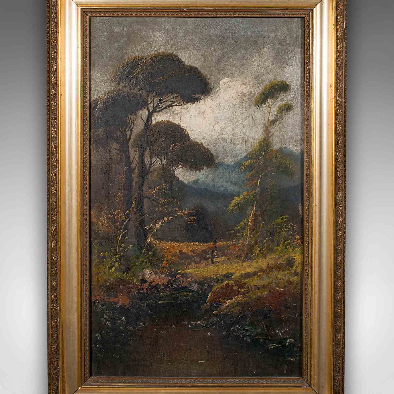 This is an antique riverside painting. A Scottish, oil on canvas landscape in gilt frame, dating to the late 19th century, circa 1900.