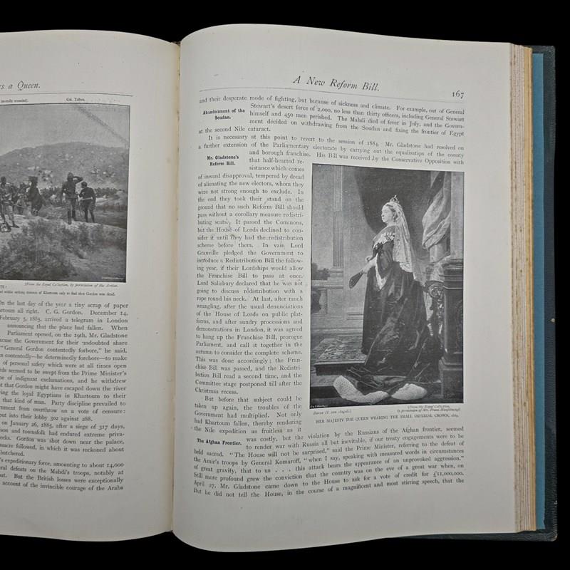 This is an antique copy of Sixty Years a Queen by Sir Herbert Maxwell Bart, published in 1897 to commemorate Queen Victoria’s Diamond Jubilee. This richly detailed royal record chronicles Victoria’s reign and key world events that shaped the 19th century. Presented in intact, original order with light age markings, the book is elegantly bound in cloth over board with gilt titling and features numerous illustrations, including reproduction paintings and photographs. A highly collectible piece of Victorian history, ideal for display in any traditional library or royal collection.