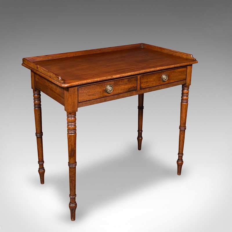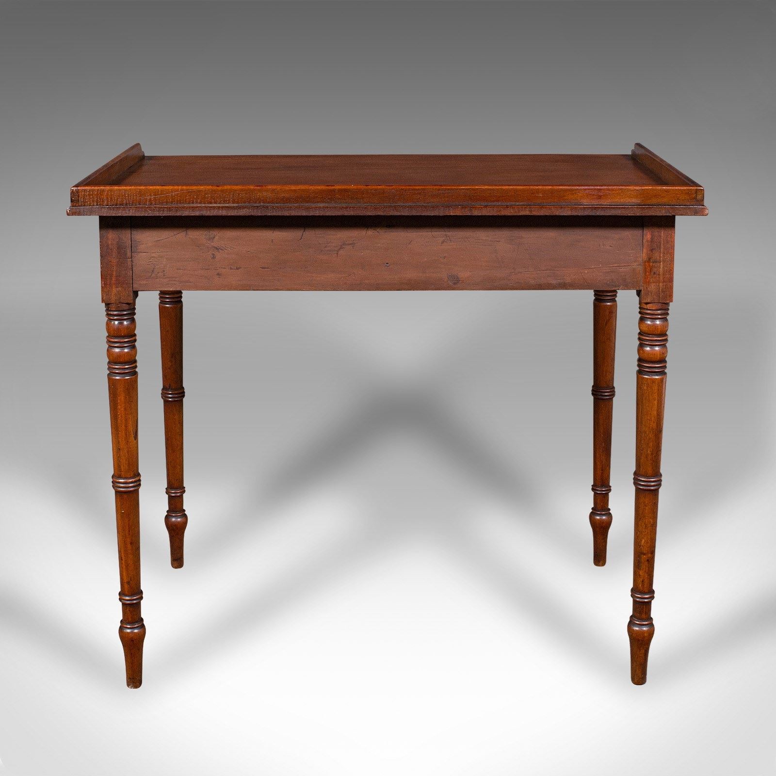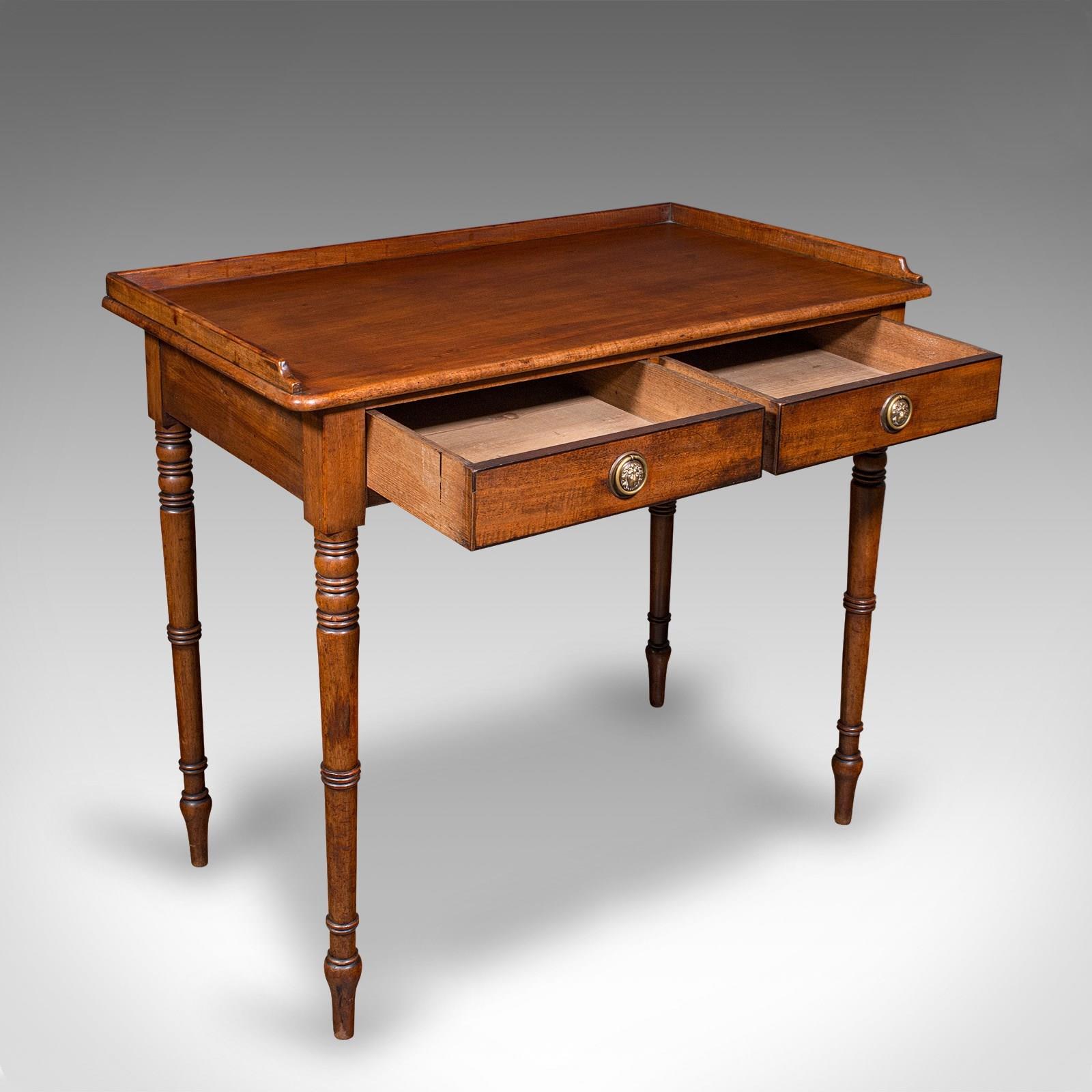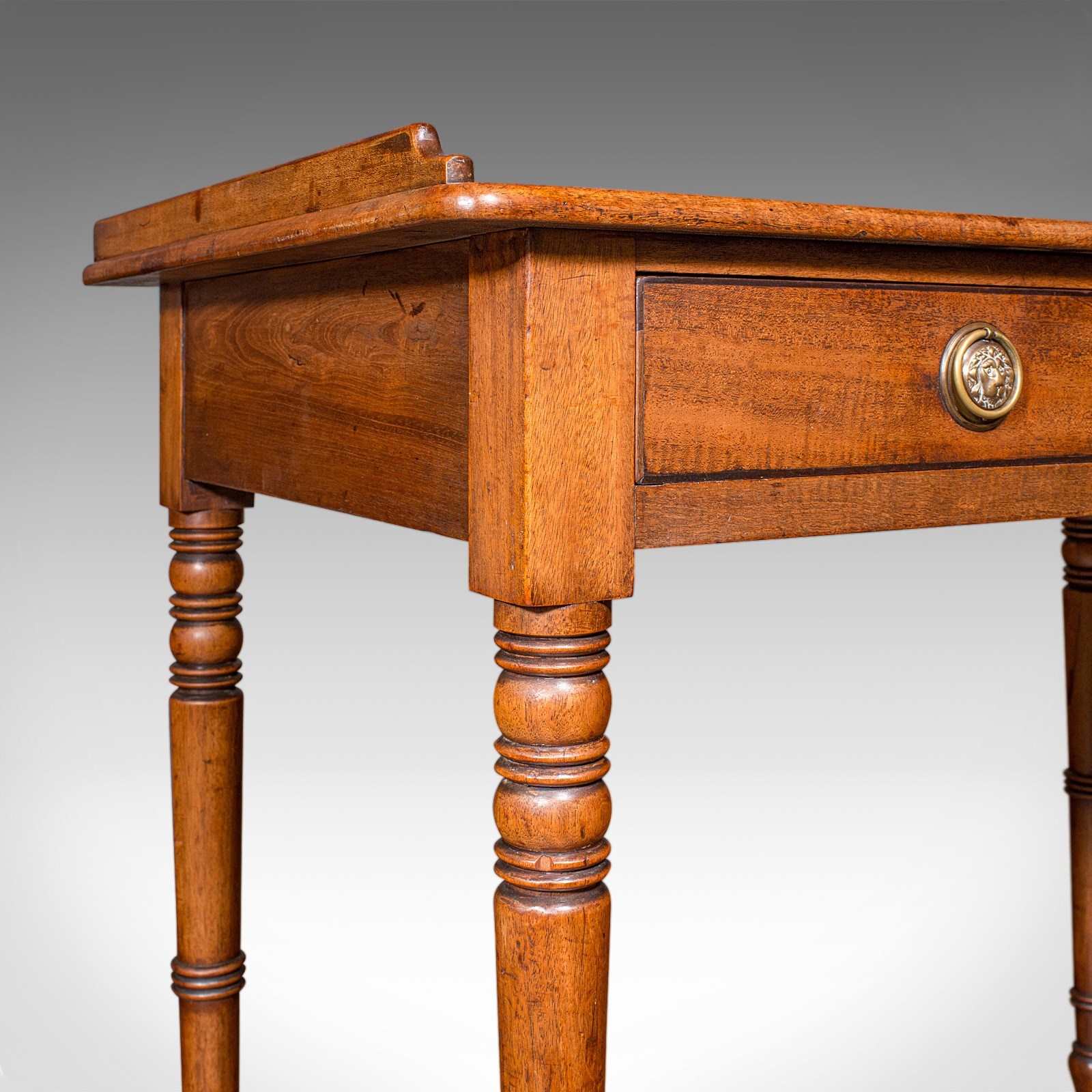 This is an antique scholar's desk. An English, mahogany writing or side table, dating to the Regency period, circa 1820. A delightful example of refined design and enduring craftsmanship, with elegant proportions and rich tone.