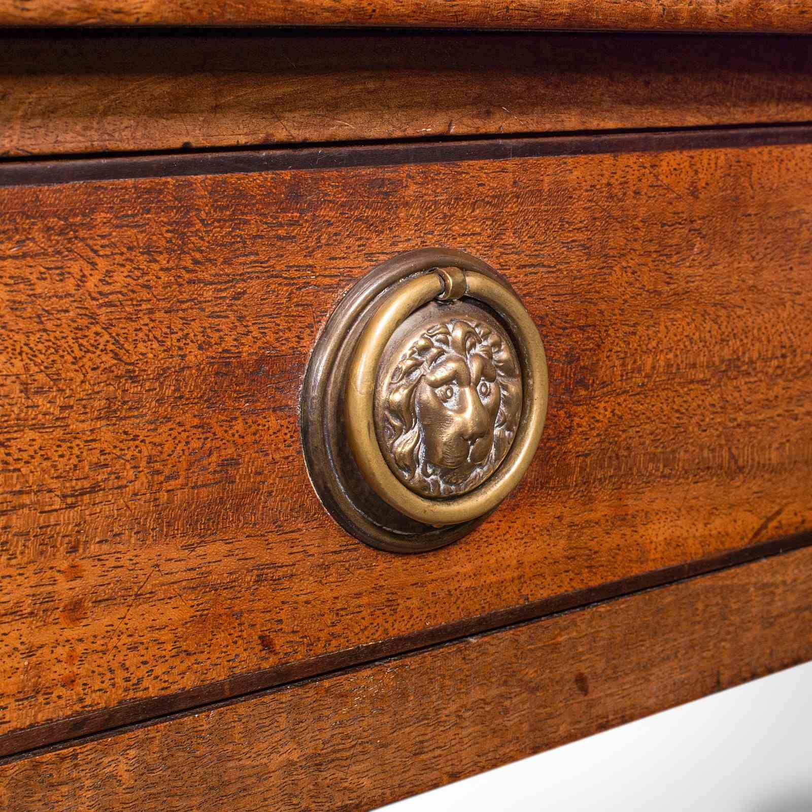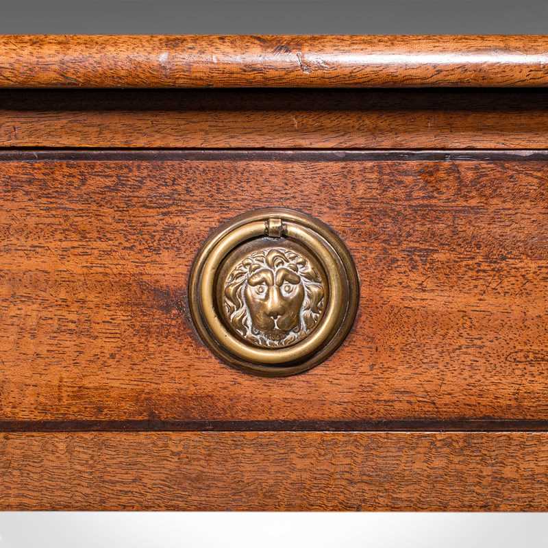 Pair of drawers to the fascia, dressed with brass lion mask drop handles for period charm