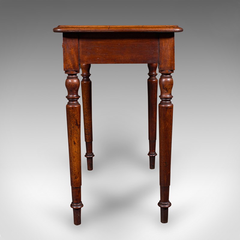 This is an antique scholar's writing table. An English, mahogany side table or desk, dating to the Victorian period, circa 1870.
