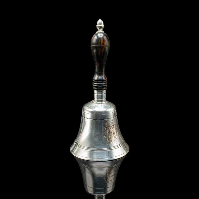 Antique Schoolmaster's Bell, English, Silver Plate, Coromandel Handle, Victorian