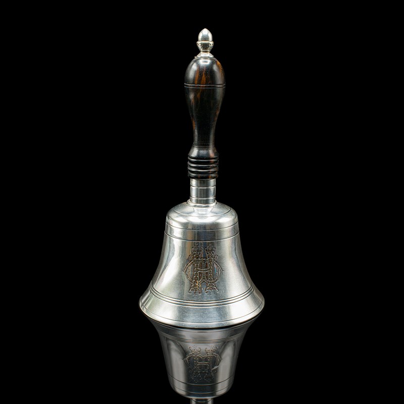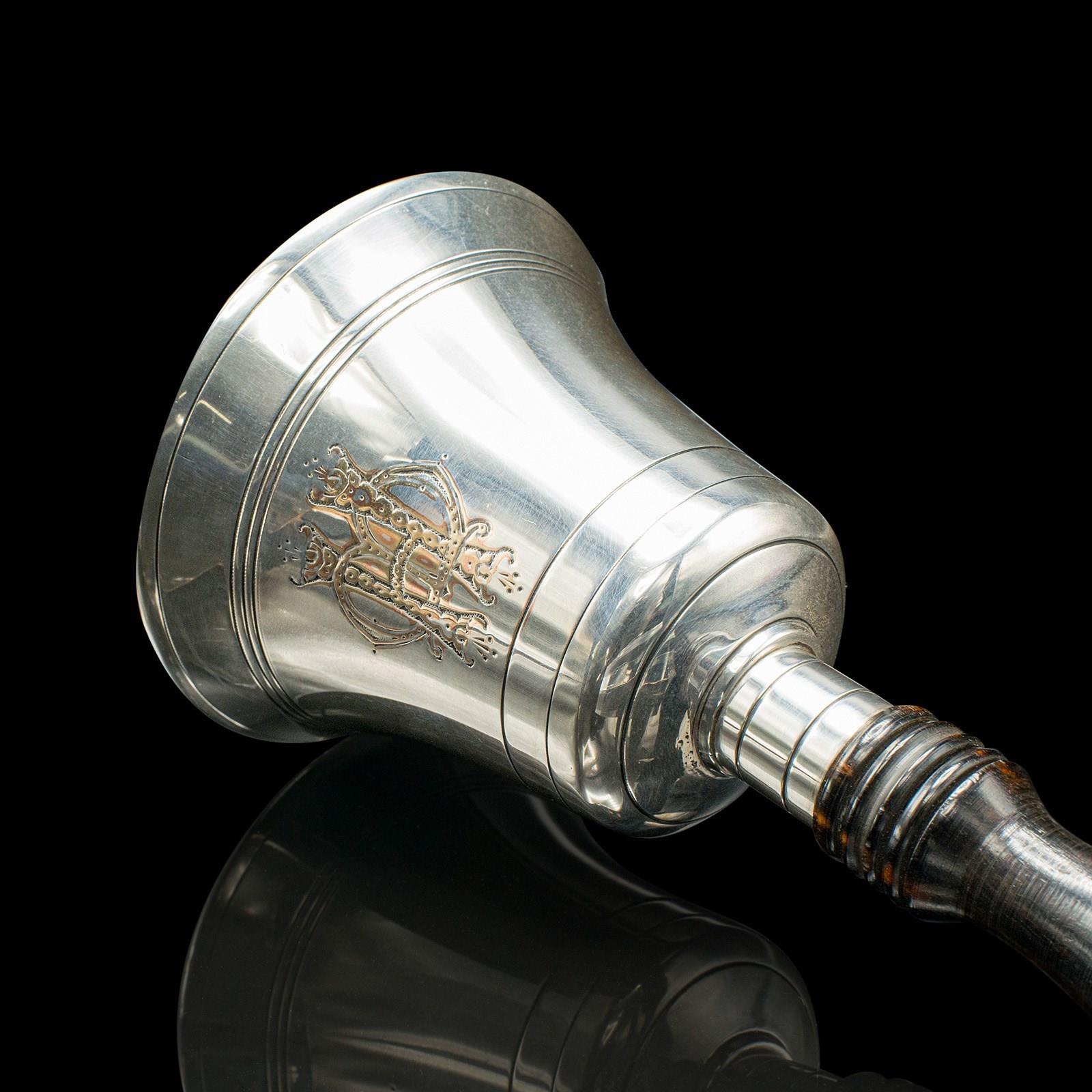 A charming piece of late Victorian silver plate, this antique hand bell is ideal for collectors, display, or period-style interiors. Delivered ready for the home or institution.