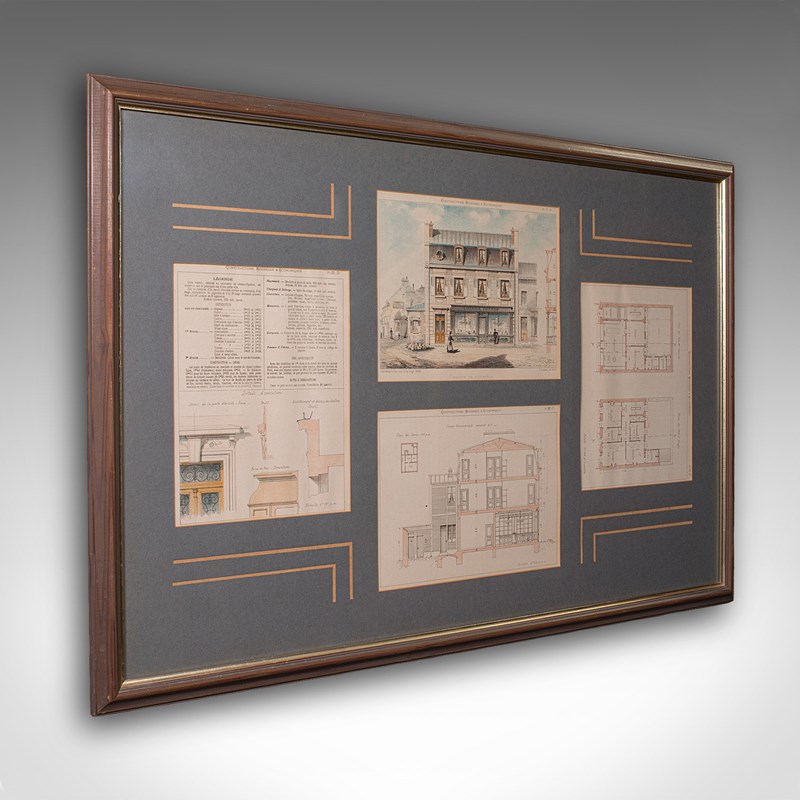 Antique Set Of Architectural Plans, French, Framed Lithographs, Art, Victorian