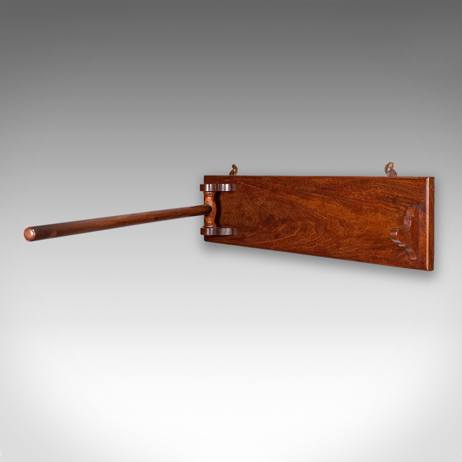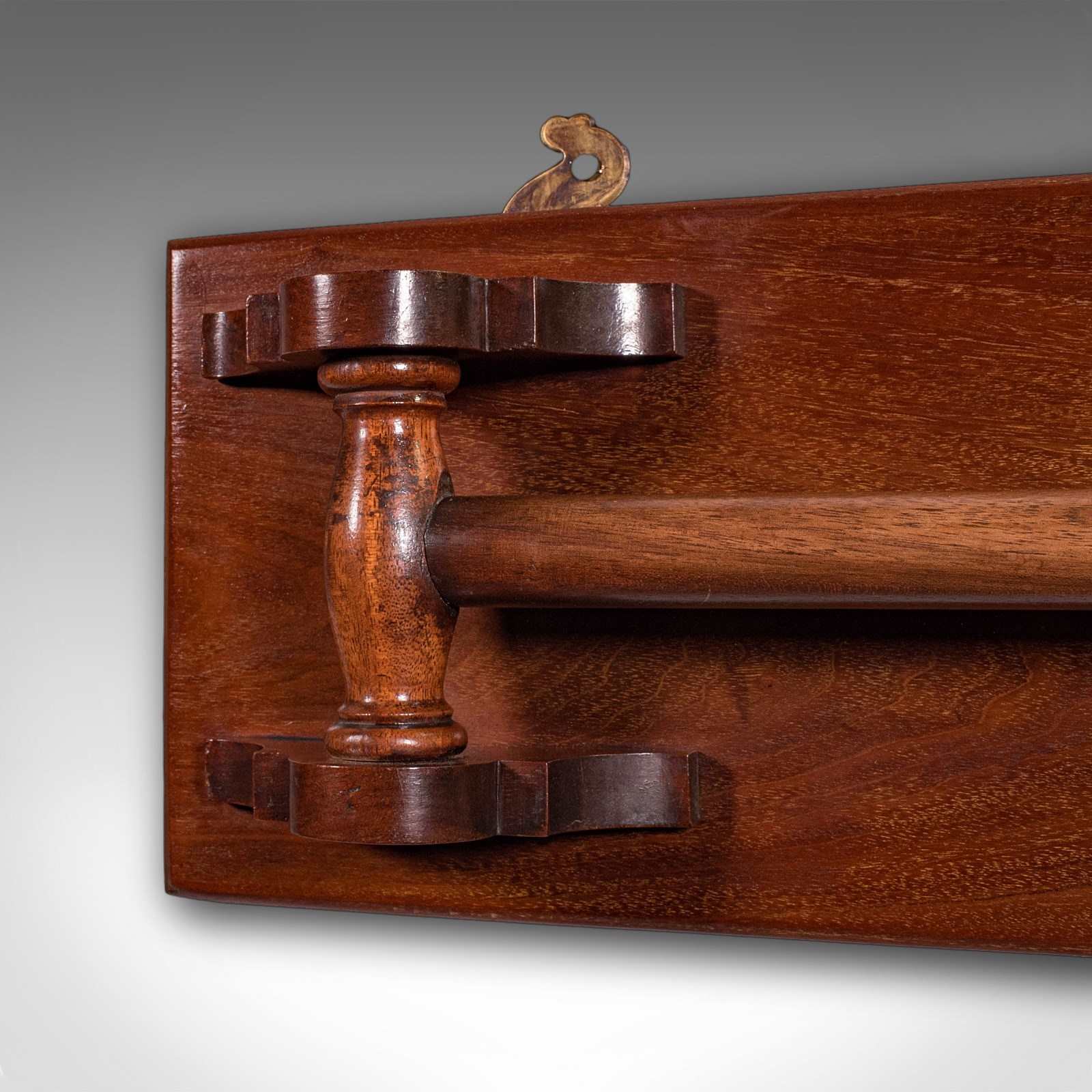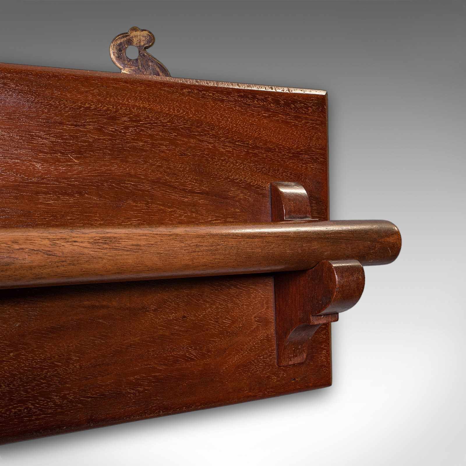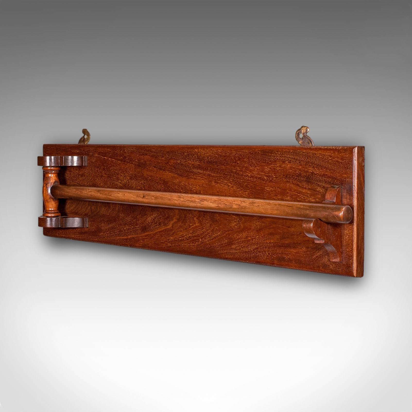 This is an antique ship's towel rail. An English, mahogany articulated drying rack, dating to the Edwardian period, circa 1910.