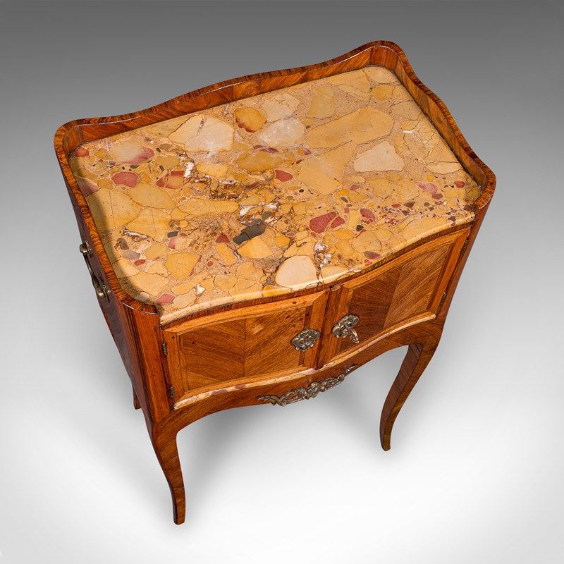 Antique Side Table, Italian, Kingwood, Marble, Bedside Nightstand, Victorian