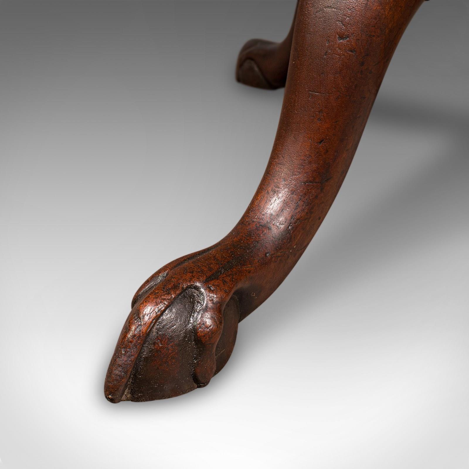 Standing confidently on a trio of cabriole legs, each terminating in classic egg and talon feet