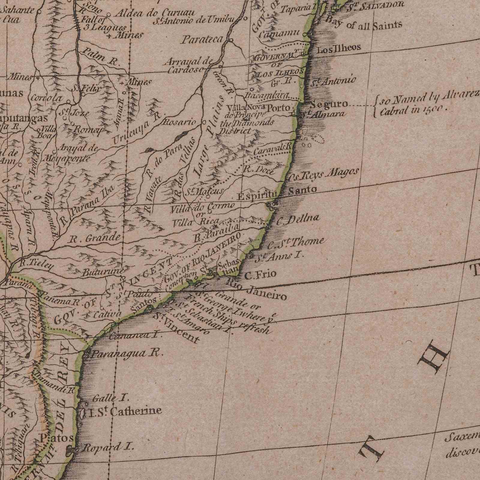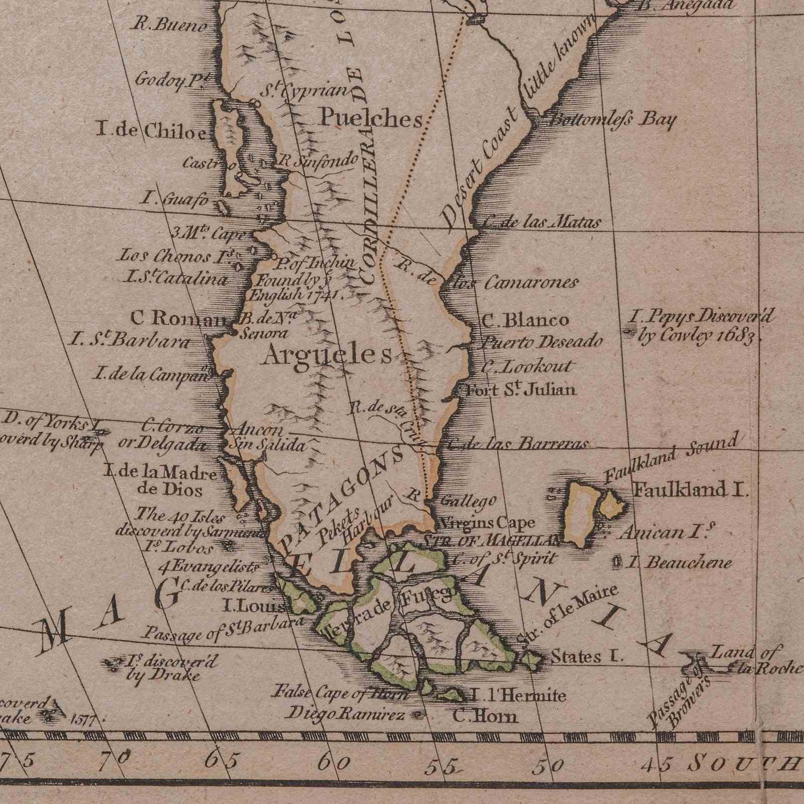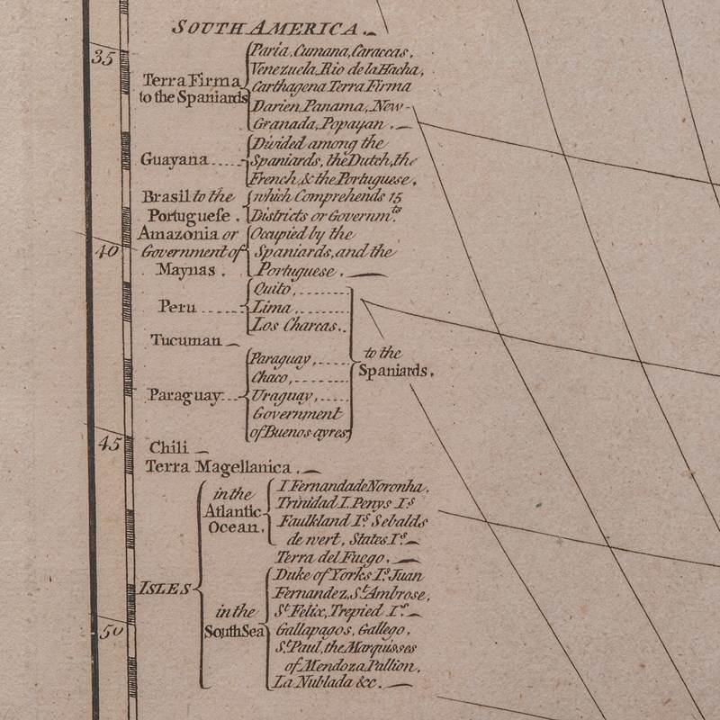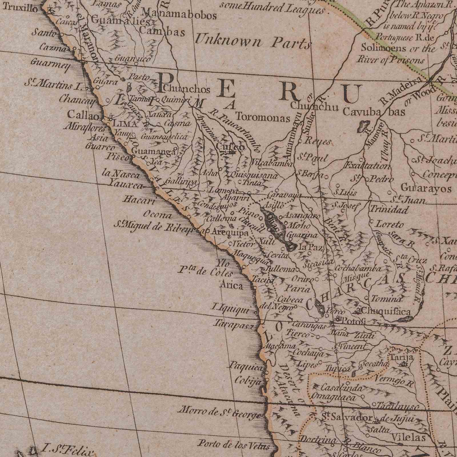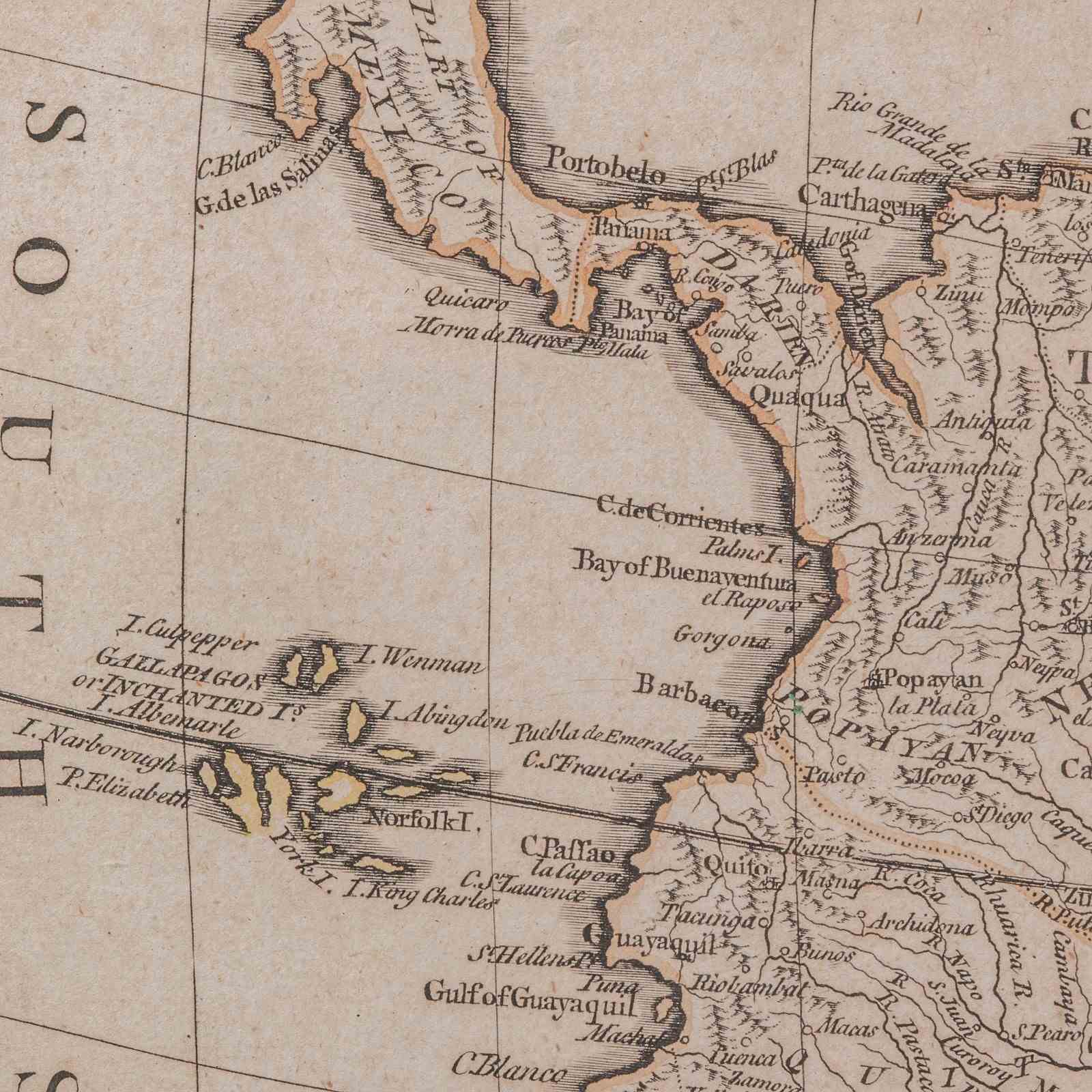 Delightful Georgian period cartography depicting the continent of South America in fine detail