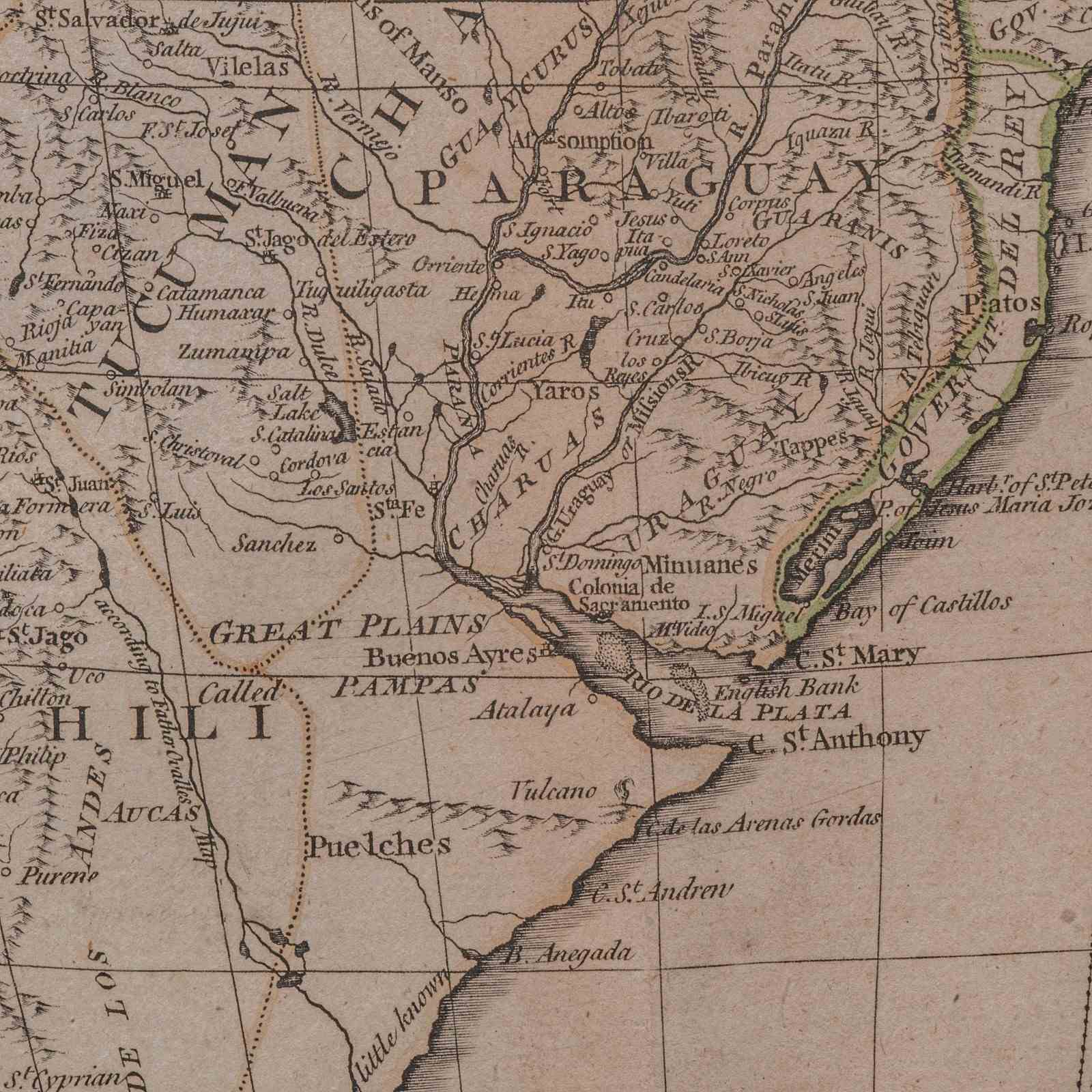 A fine example of Georgian cartographic art, this antique South America map by De La Rochette offers a rare opportunity to appreciate both historic geography and period craftsmanship. Ideal for collectors and admirers of 18th century exploration. Delivered ready to display.