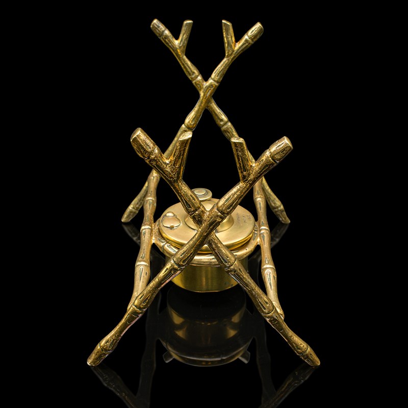 - Brass dazzles with rich golden tones to the kettle and stand