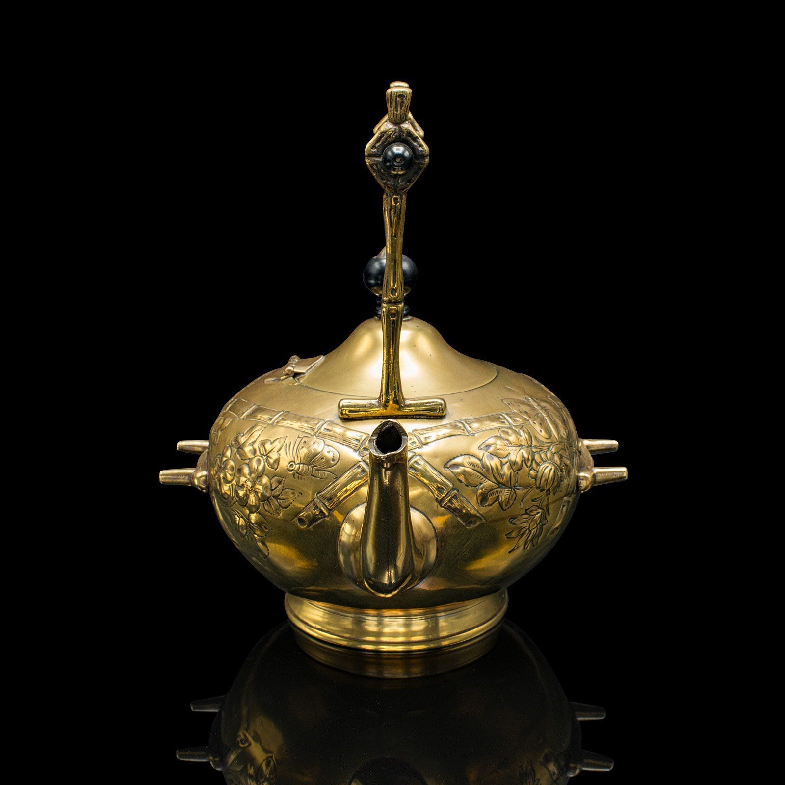 - Ebonised bamboo effect handle matches the engravings upon the kettle