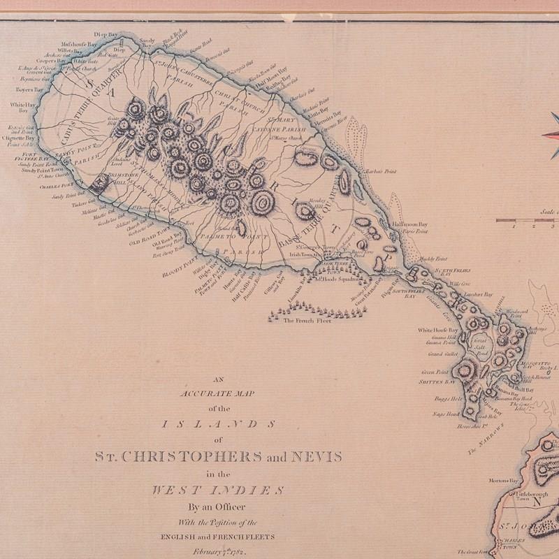 Antique St Christopher & Nevis Map, English, Caribbean Cartography, Georgian