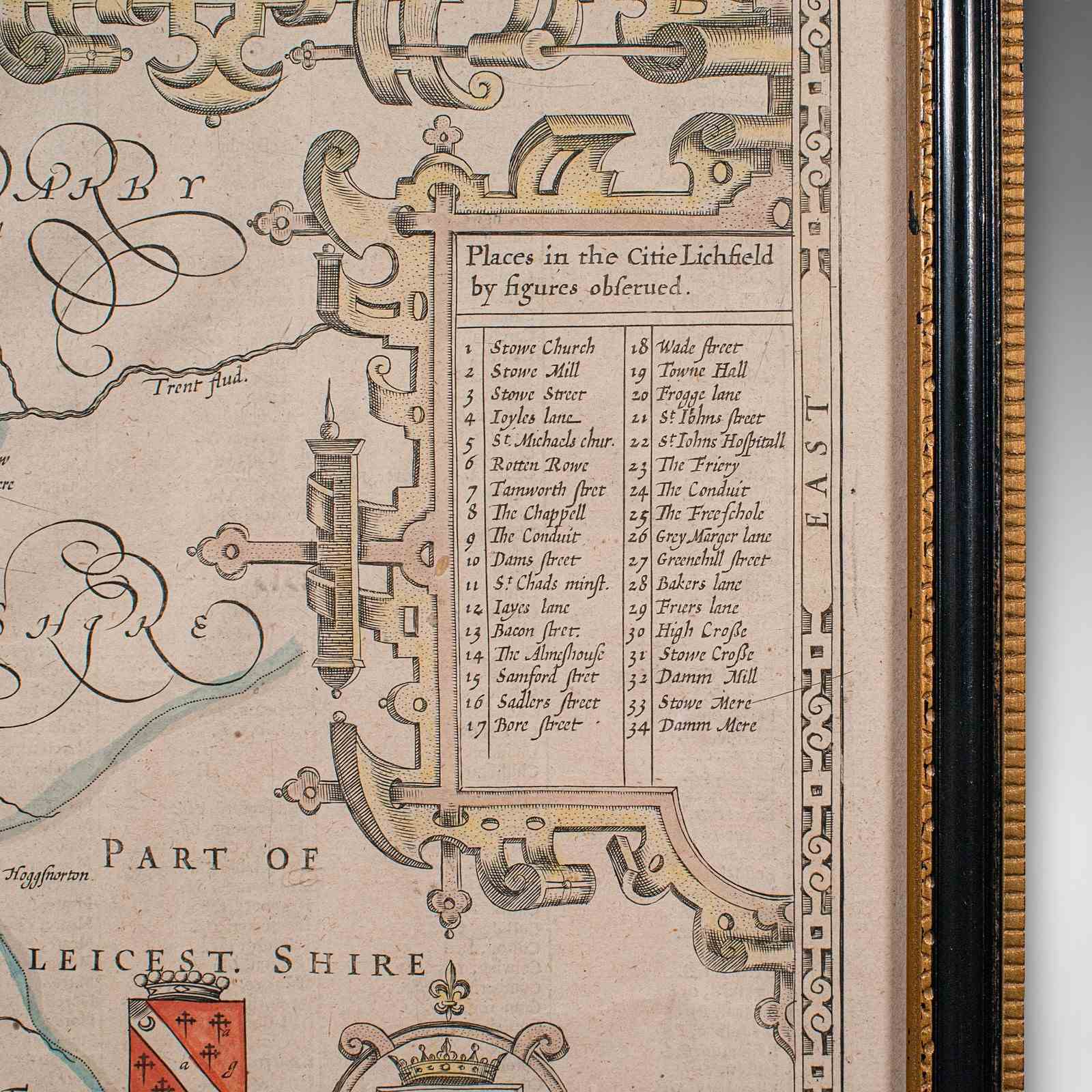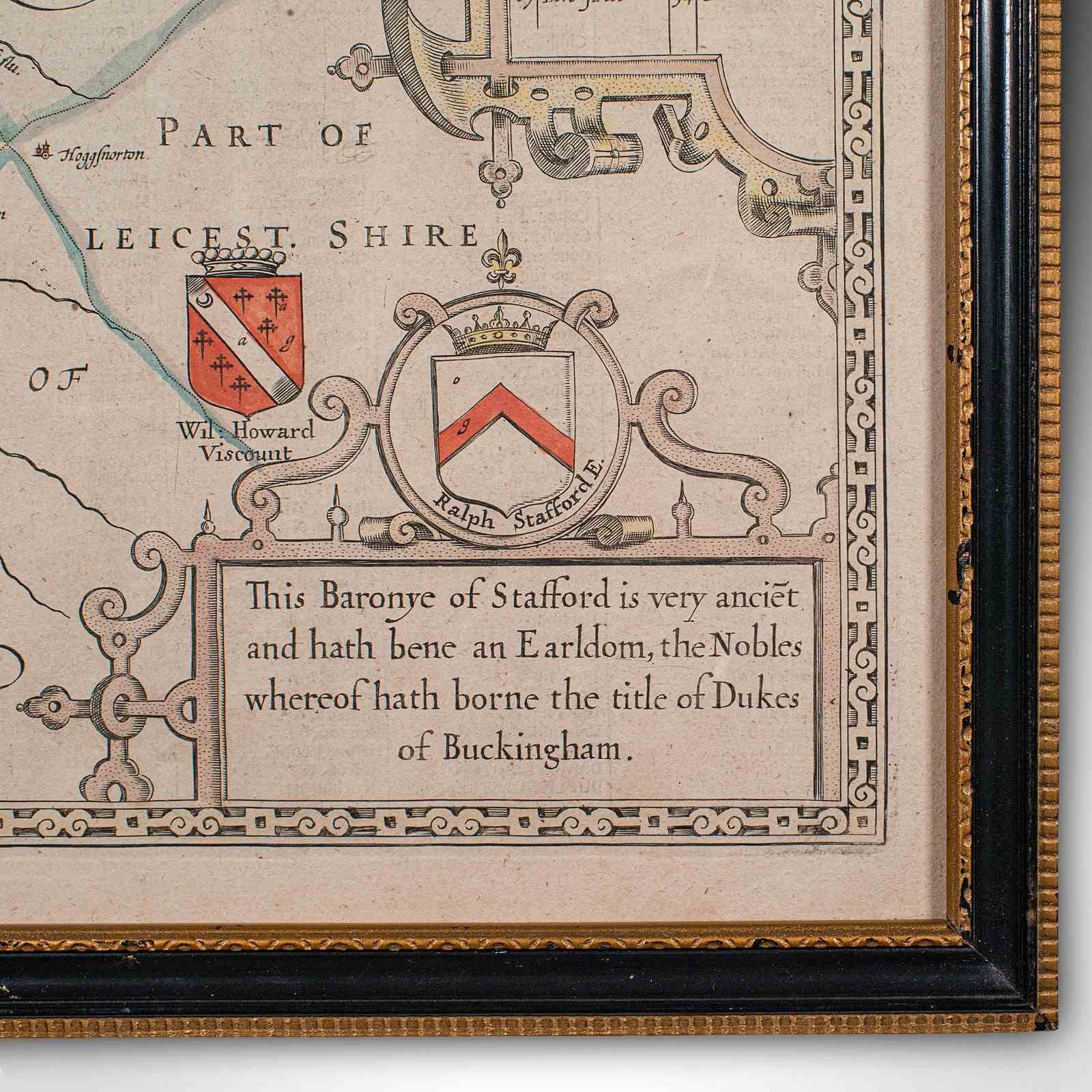 Antique Stafford County Map, English, Atlas Engraving, 17Th Century, Cartography
