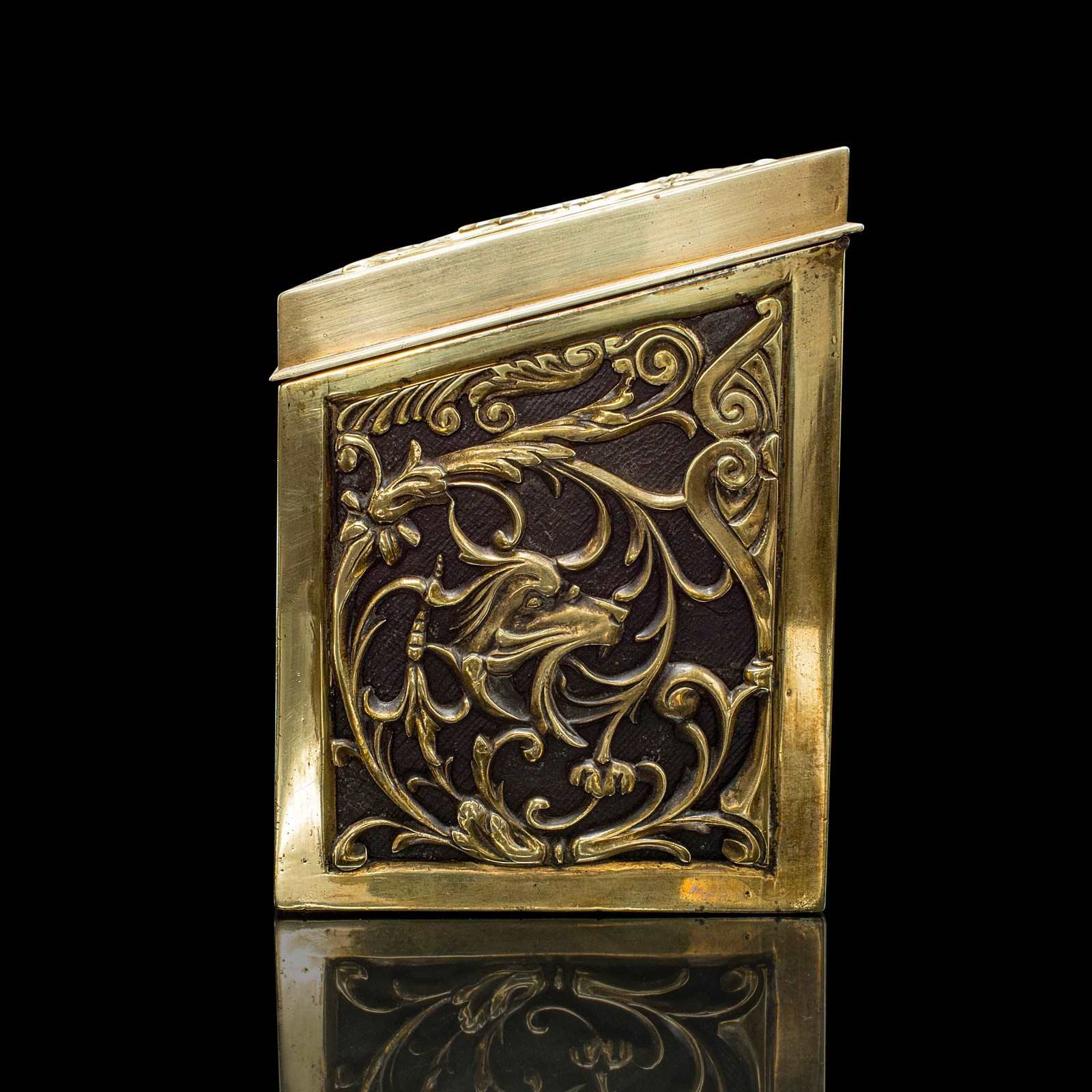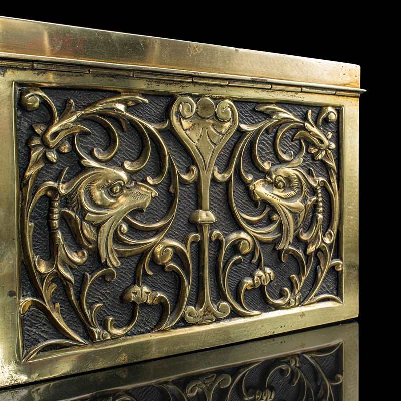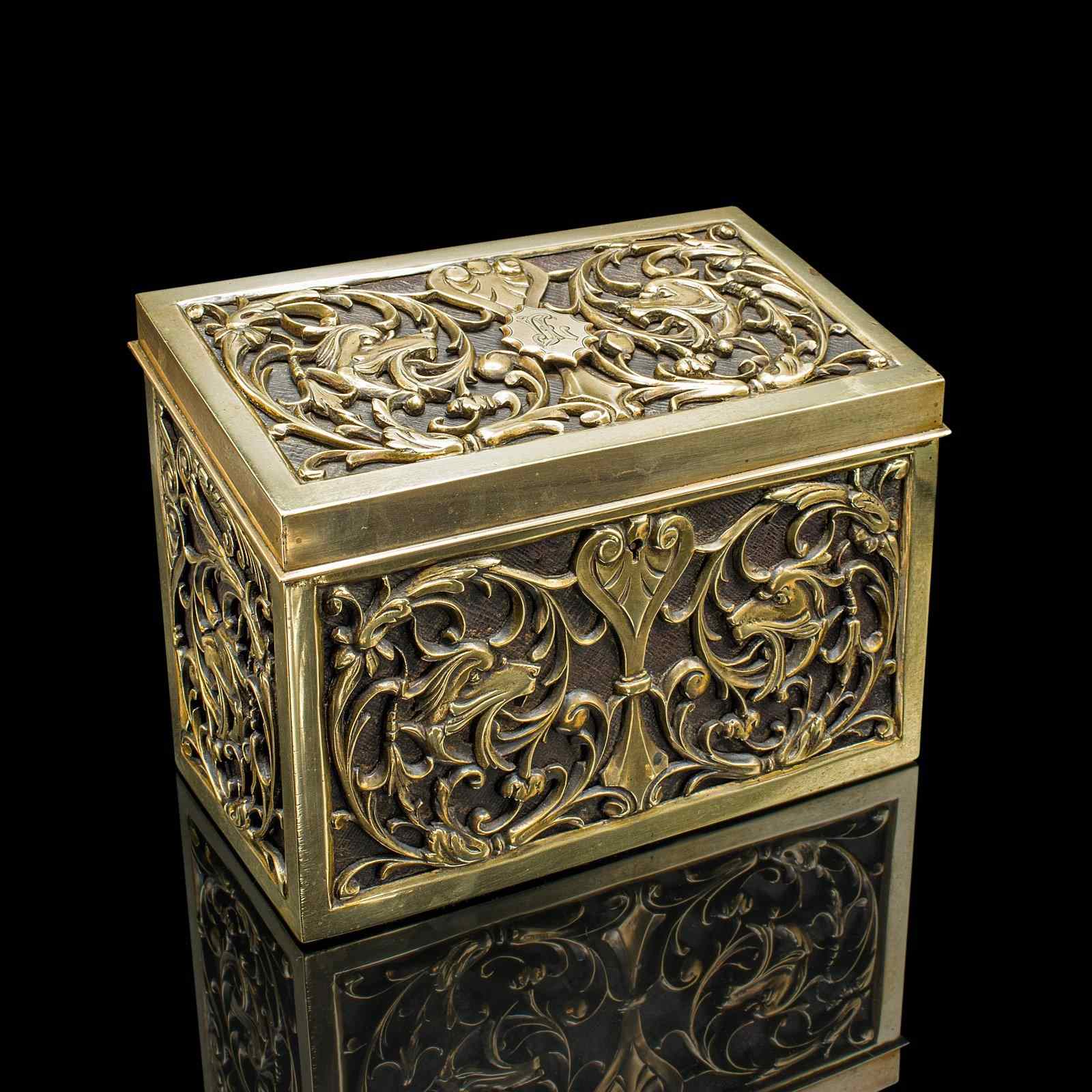 This antique brass stationery box is a statement piece, combining practicality and decorative charm. A distinctive addition to any writing desk, study, or collector’s cabinet. Delivered ready for the home or institution.