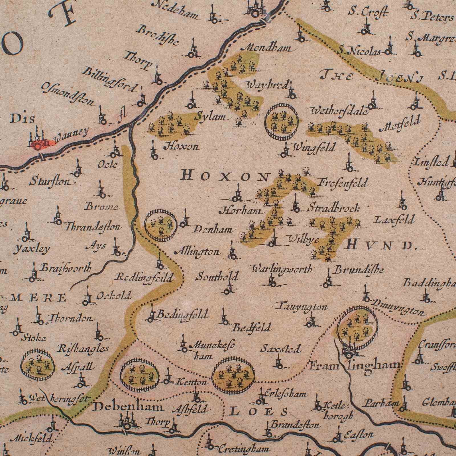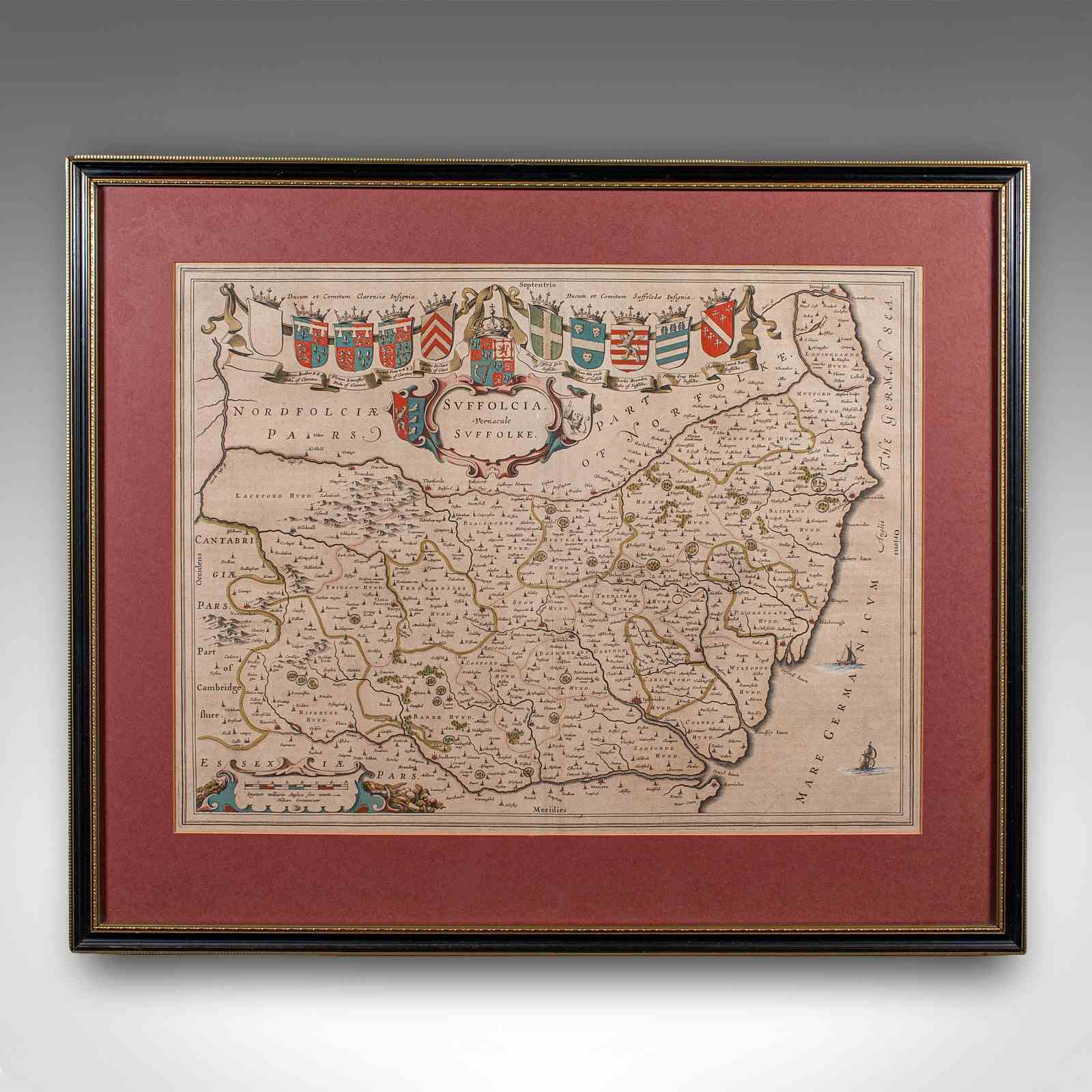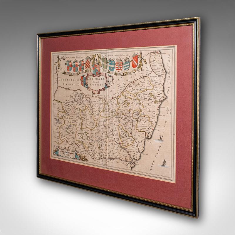 This is a fascinating antique county map of Suffolk, with superb detail and mid-17th century cartographic interest. Delivered ready to display.
