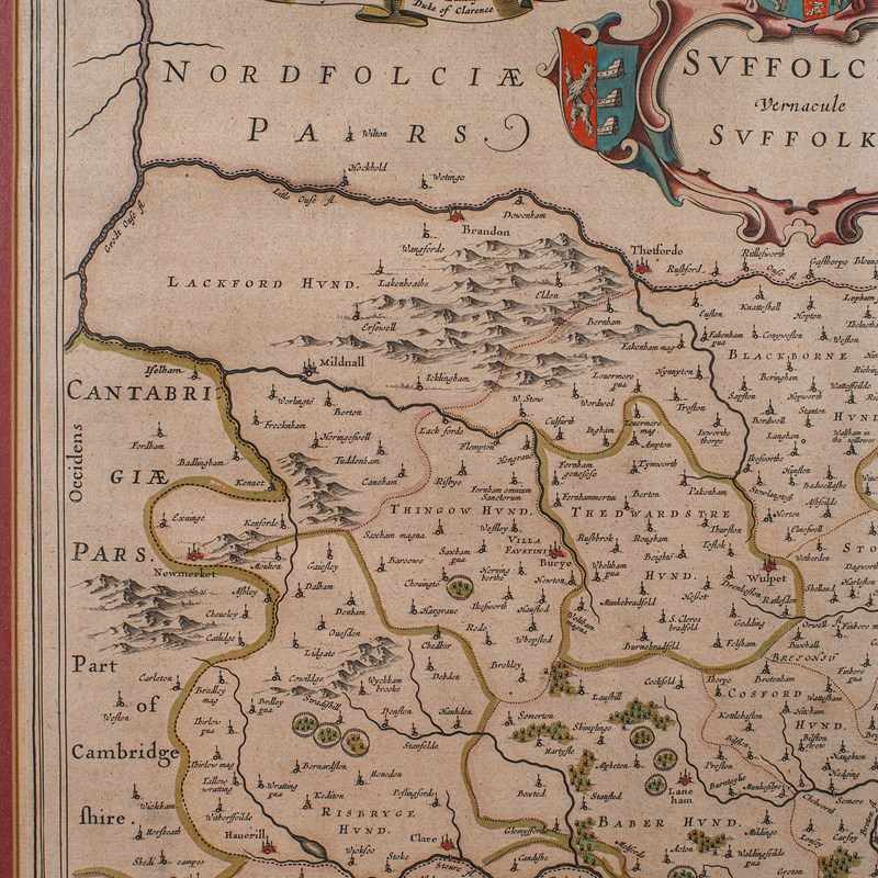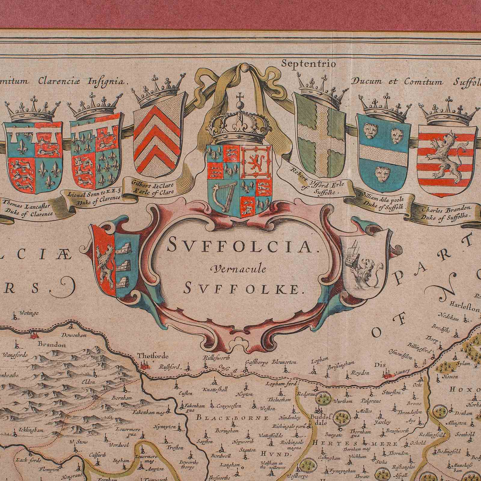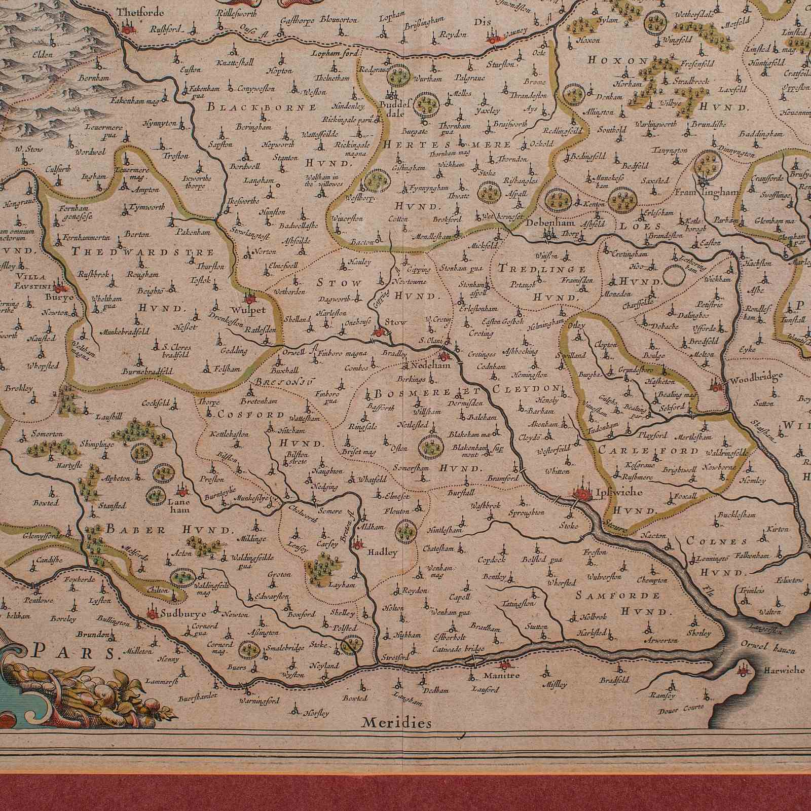 Antique Suffolk County Map, Dutch, Atlas Novus, Joan Blaeu, Cartography, C.1645