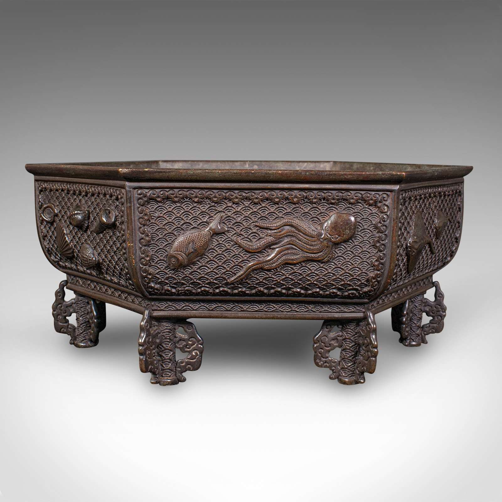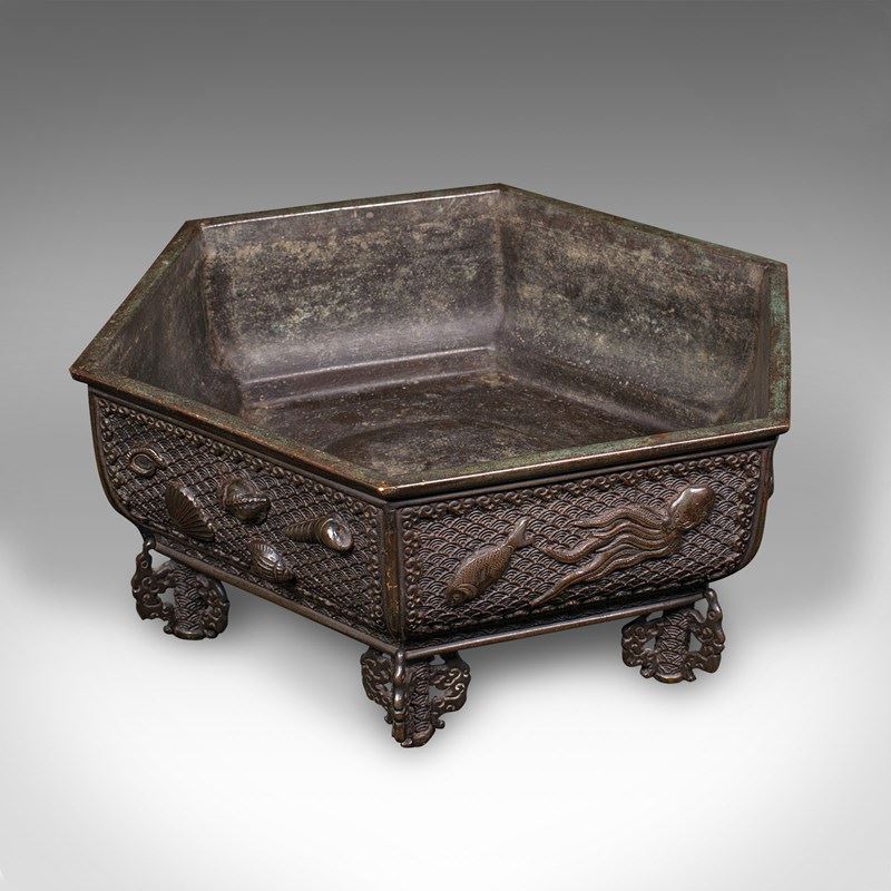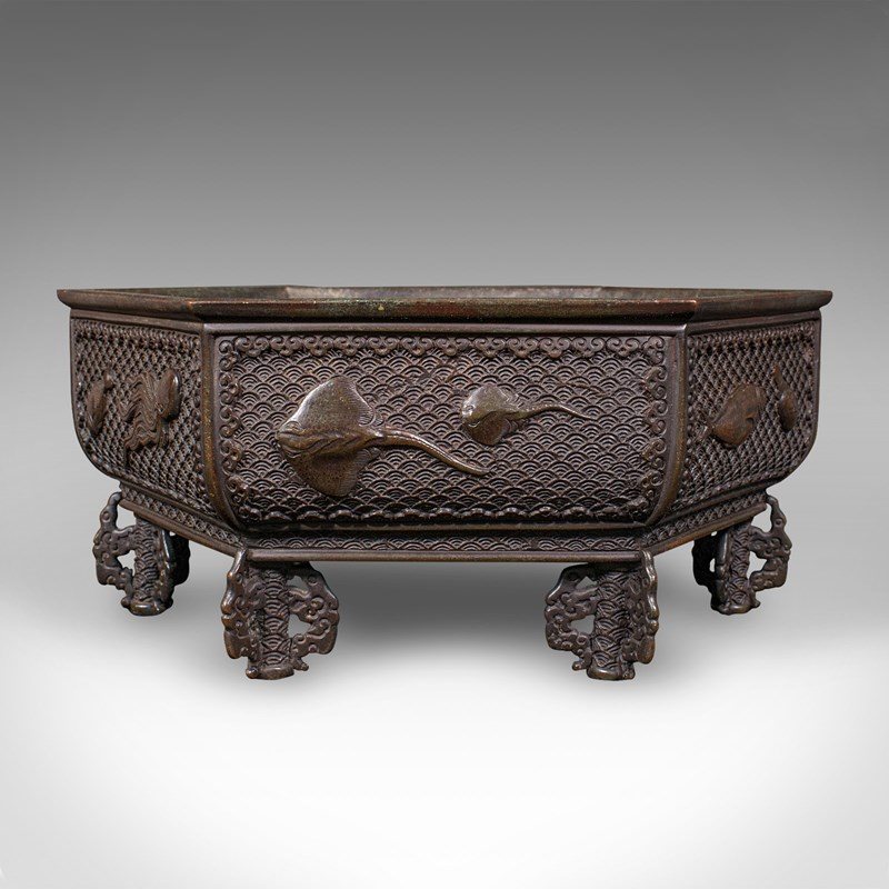 Antique Suiban Planter, Japanese Bronze Bonsai Jardiniere, Edo Period, Victorian