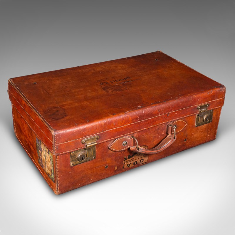 Antique Travel Suitcase, English, Leather Gentleman’S Case, Edwardian, C.1910