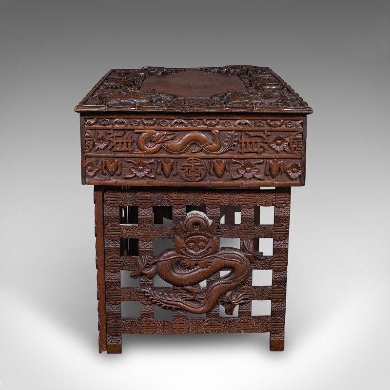 This is a captivating antique travelling altar, with superb Oriental carving and campaign versatility. Solid joints and construction, delivered ready to enjoy or display.