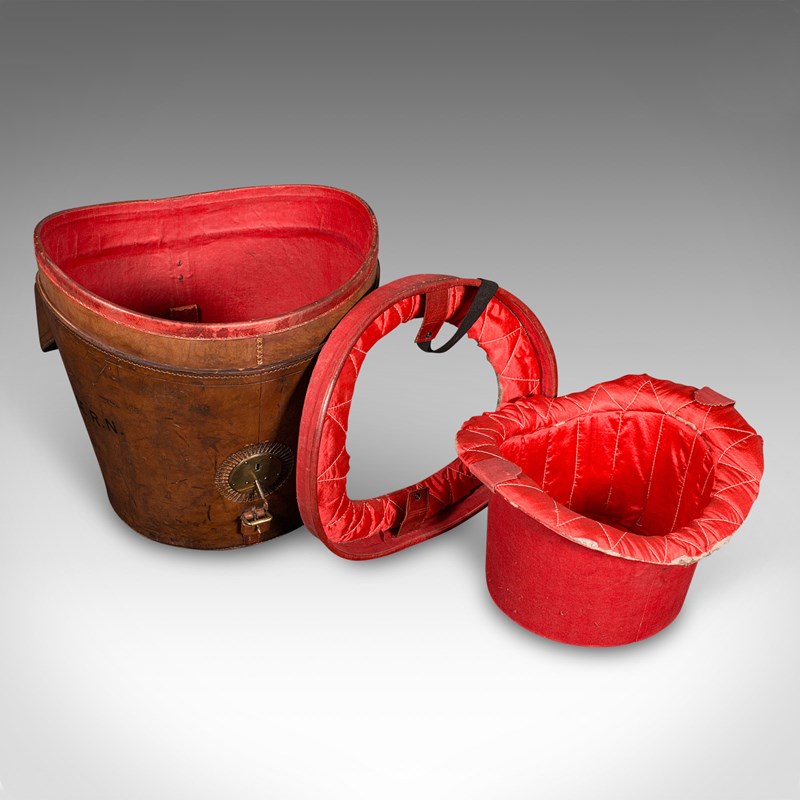 This is a delightful antique triple hat transit case, with a rich colour and fascinating personalised finish. A treat for display or use. Delivered ready to enjoy.