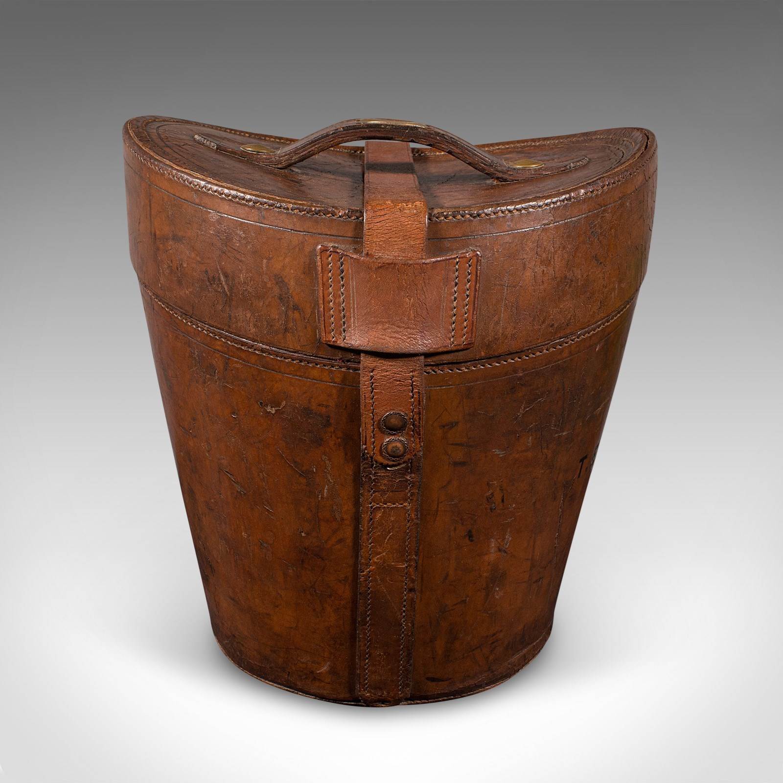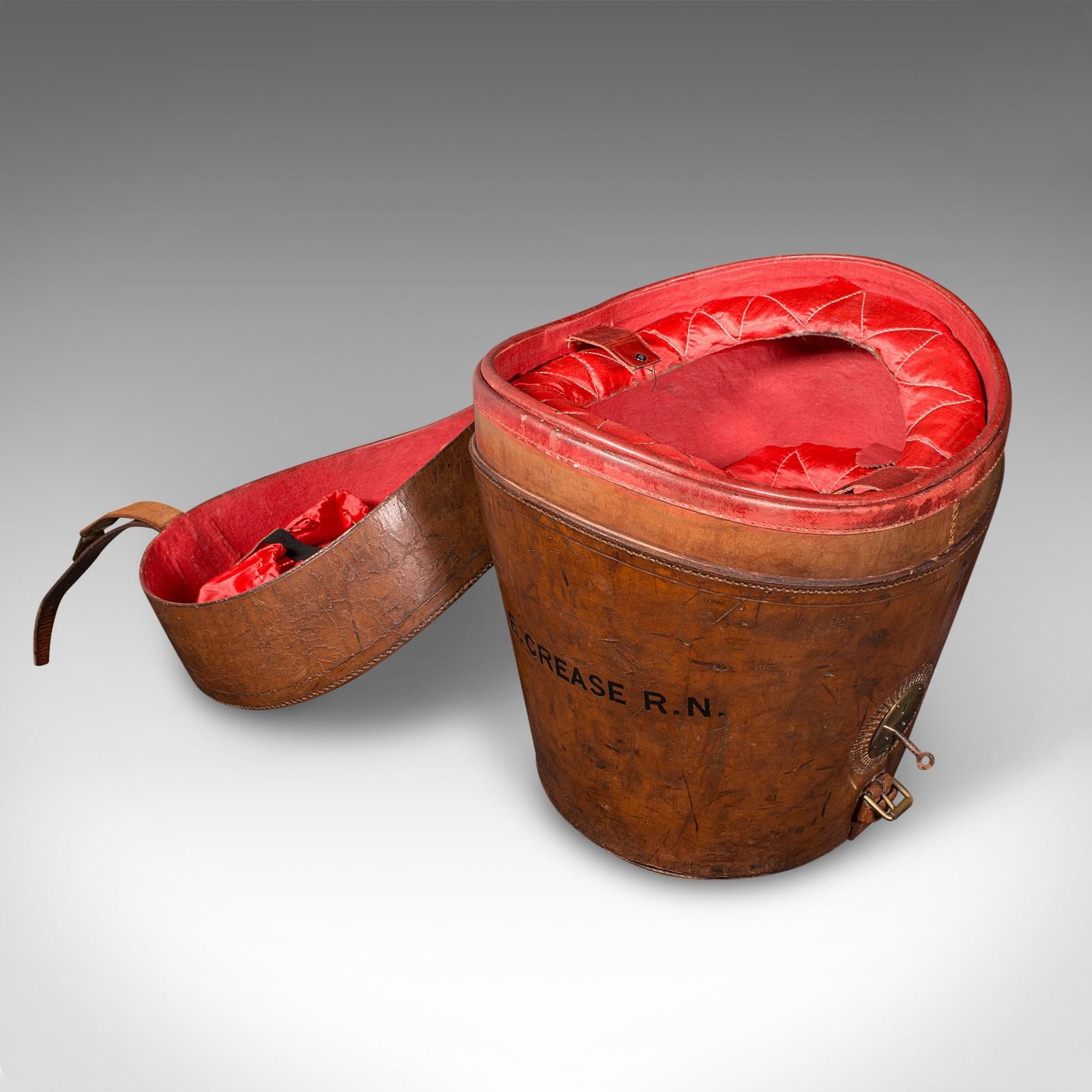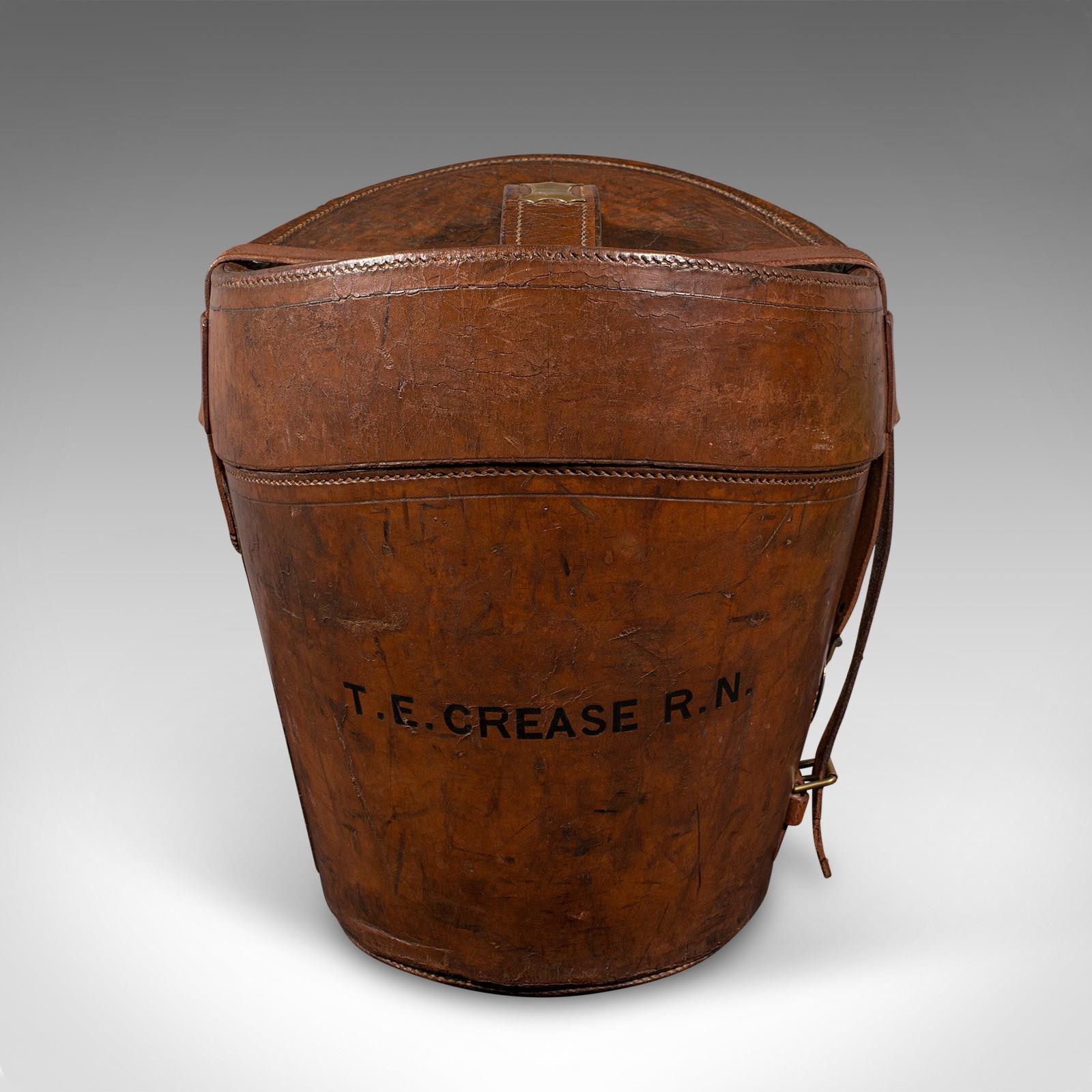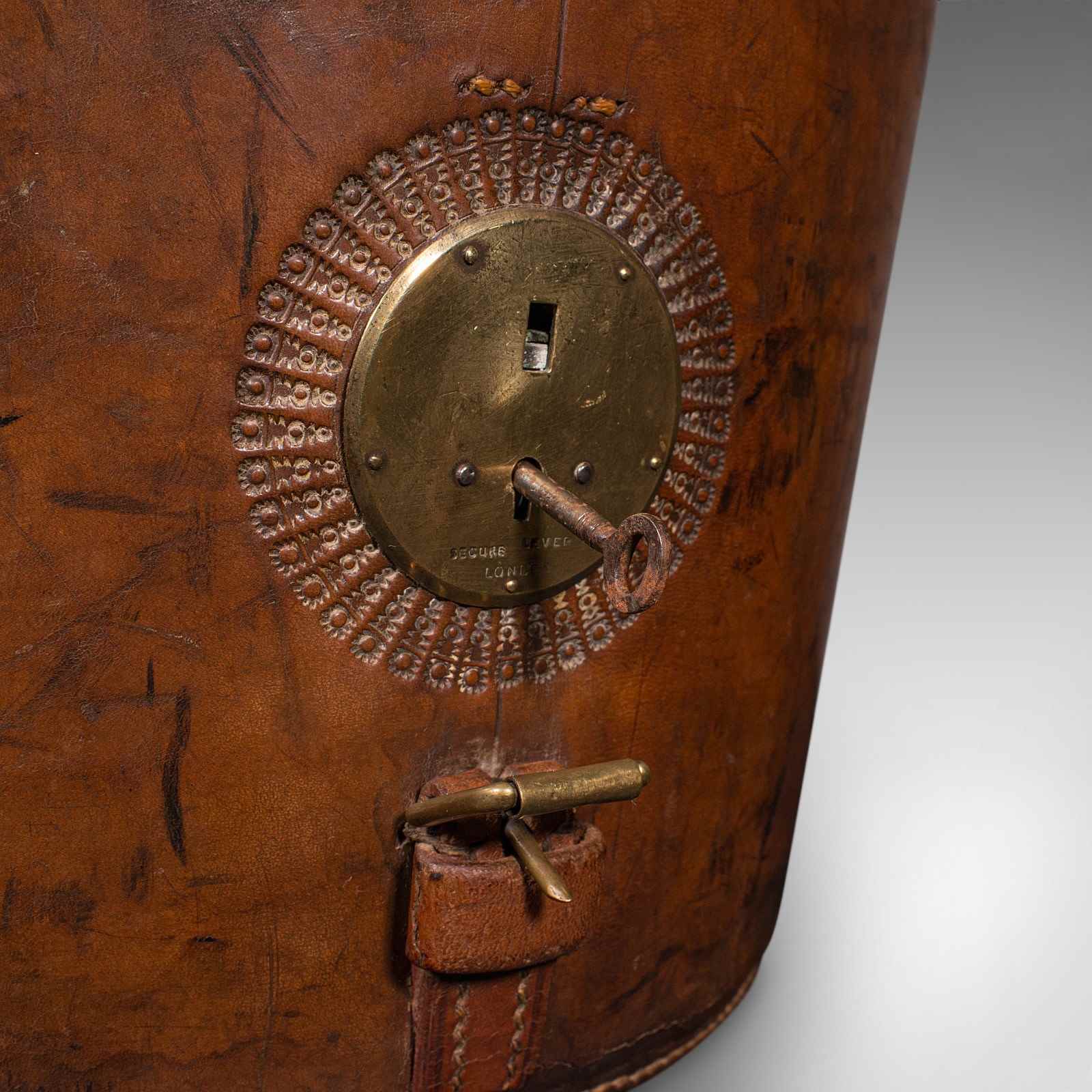 This is an antique triple hat transit case. An English, leather top hat box, dating to the late Victorian period, circa 1890.