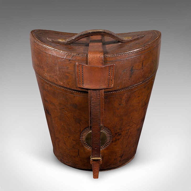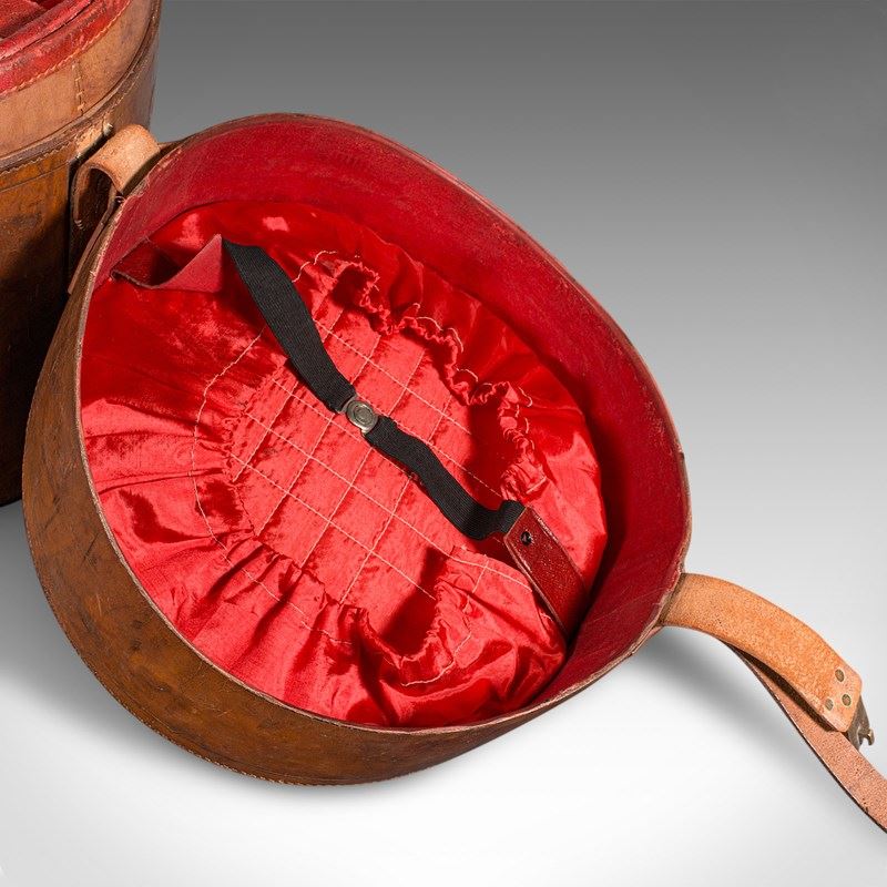 Antique Triple Hat Transit Case, English, Leather, Top Hat Box, Victorian, 1890