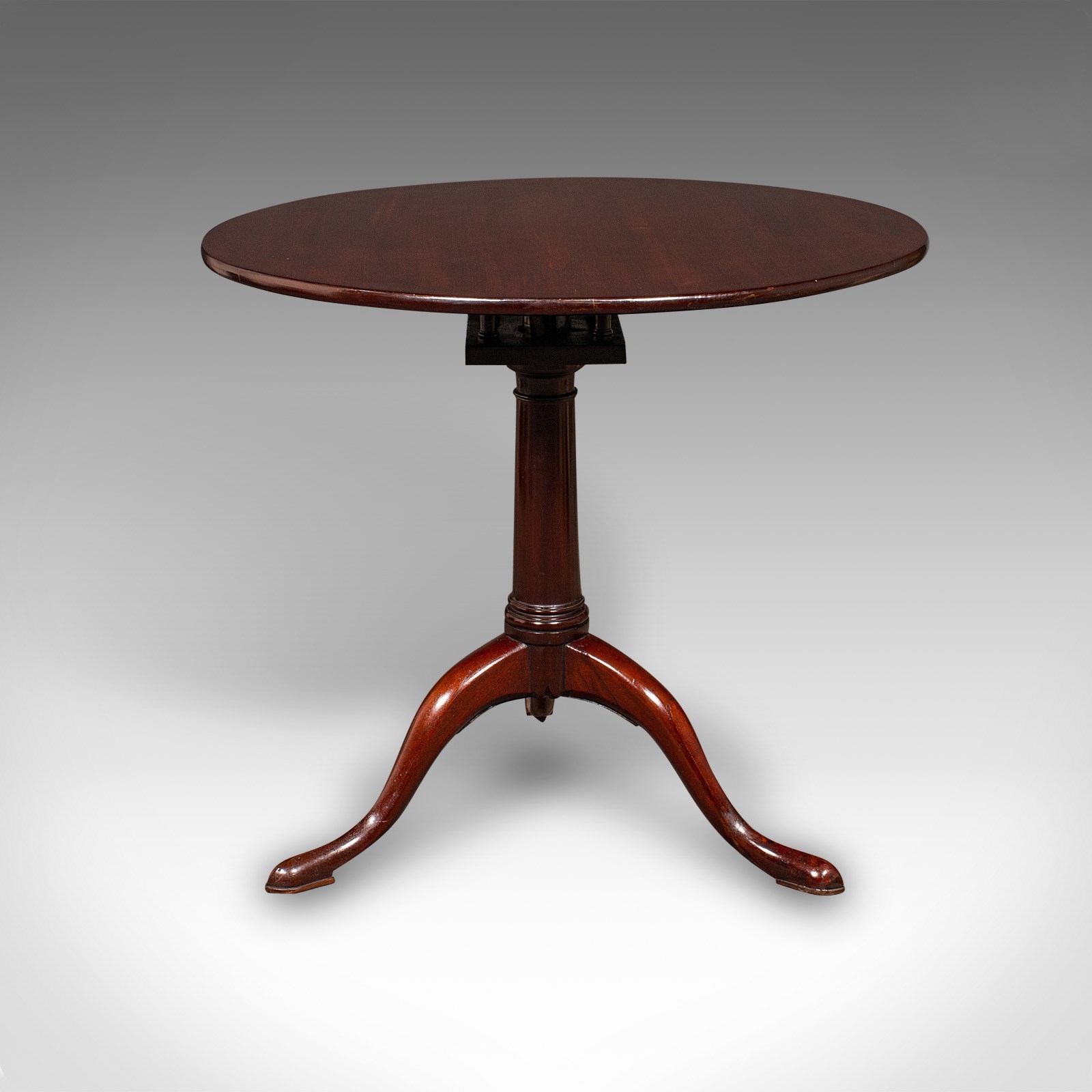 Tripod base with broad cabriole legs resting upon slipper feet, displaying classic Georgian restraint