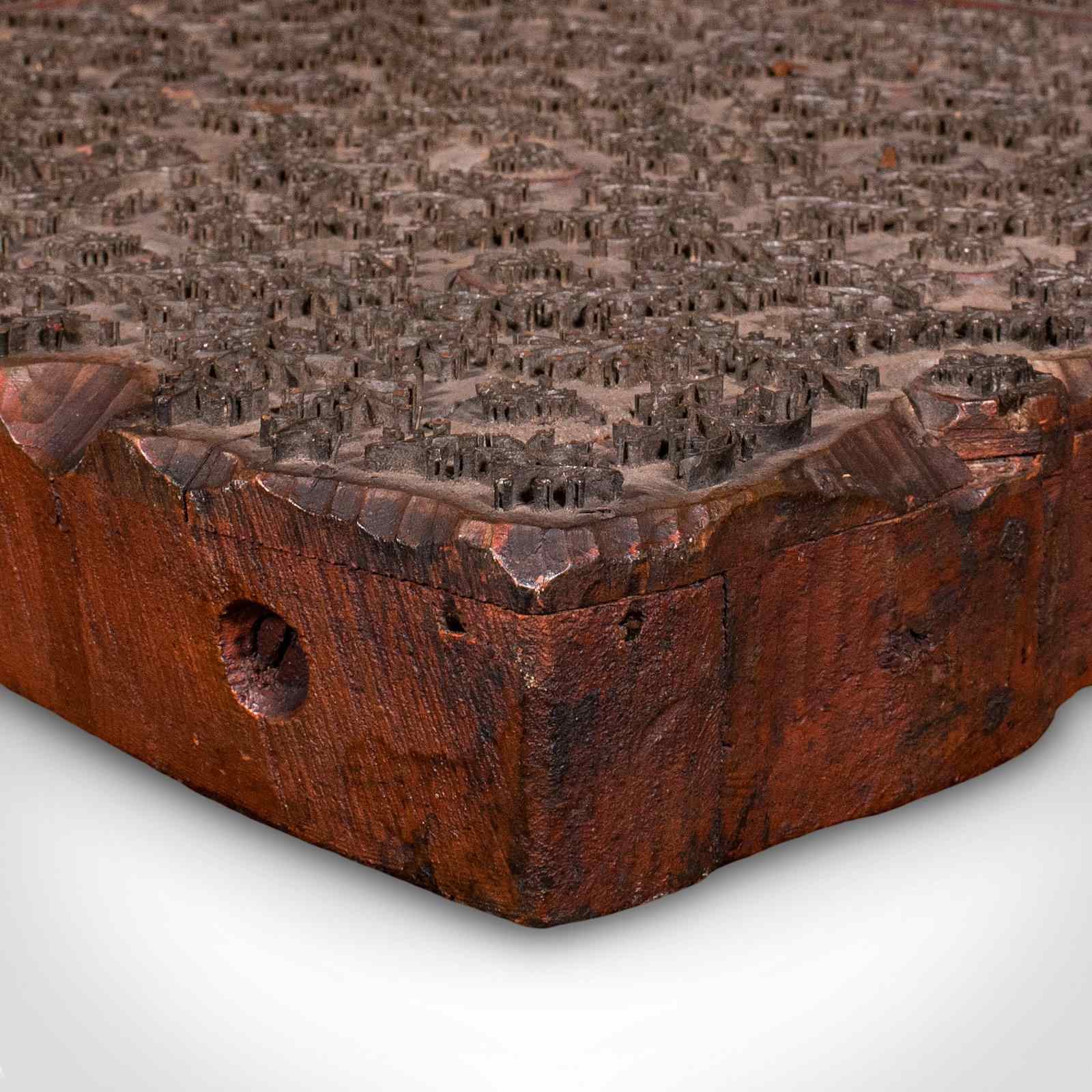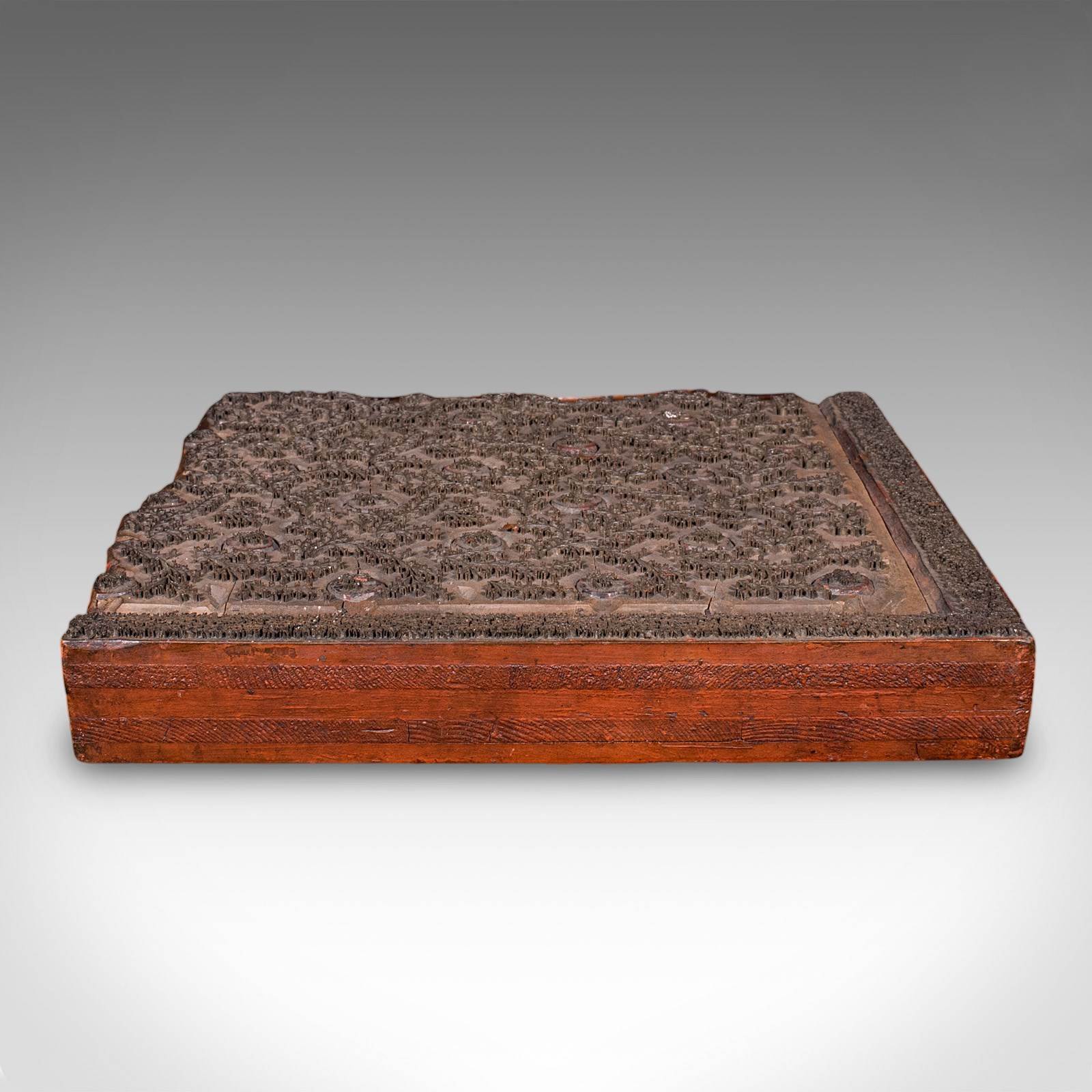 This is an antique wallpaper printing block. An English, carved brass on hardwood printer's stamp, dating to the late Victorian period, circa 1880.