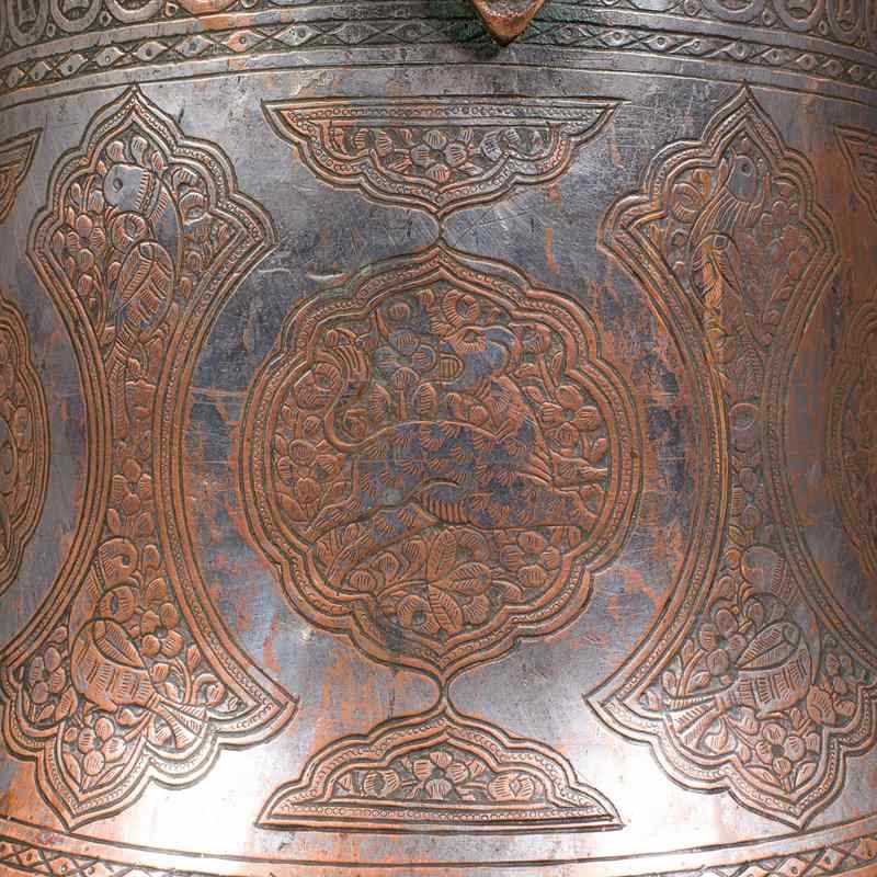 This is an antique water bucket. A Burmese, silvered copper fireside store, dating to the Georgian period, circa 1800.